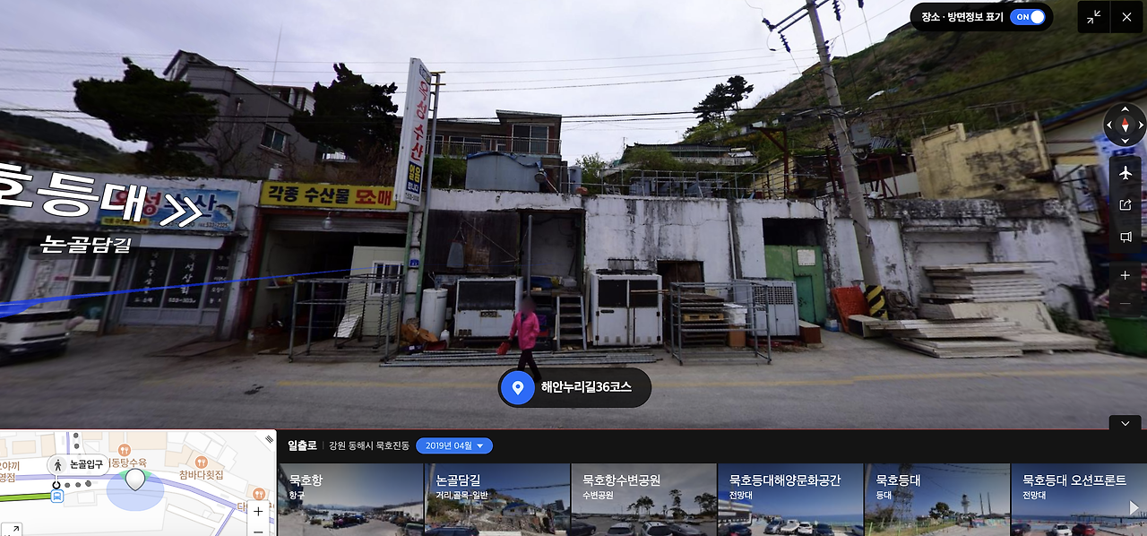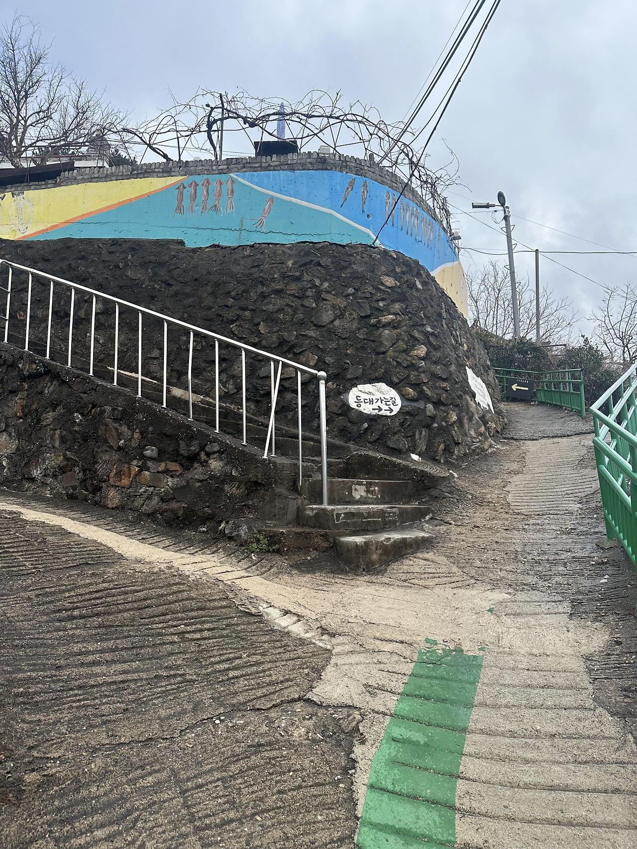 묵호역에서 논골담길까지는 도보로 빠르면 20분정도면 이동 할 수 있습니다. 묵호역에서 논골담길까지 버스가 있기는 한데 자주 오지는 않습니다. 버스를 이용할 때 네이버나 카카오 맵을 통해 버스 위치를 찾아보고는 합니다. 묵호의 경우에는 배차간격도 자주 오지 않아 기다리는데 시간이 많이 걸리긴 합니다. 그런데 묵호는 버스보다 도보로 이동 시 더 좋은 느낌을 받을 수 있습니다. 묵호역에서 논골담길은 시내 느낌이지만 논골담길부터 그 이후는 바다 바람을 직접적으로 보고 느낄 수 있기 때문에 버스를 타면 개인적으로 더 손해보는 느낌이더라구요. 다음 후기에서도 들려드리겠지만 논골담길에서 어달해변 가는길은 바다를 직접 보고 느낄 수 있어서 정말 시원하고 좋았습니다. 저는 1시 30분에 묵호역에 도착했습니다. 점심도 먹어야 하는데 캐리어도 맡겨야 해서 미리 예약했던 103LAB게스트하우스 사장님께 양해를 구하고 캐리어만 미리 맡기기 위해 논골담길로 올라갑니다. 논골담길 언덕위에는 묵호등대와 바람의 언덕이 대표적으로 있는데요. 이곳에 오르면 묵호가 다 보여 정말 아름다운 동해바다를 볼 수 있습니다.