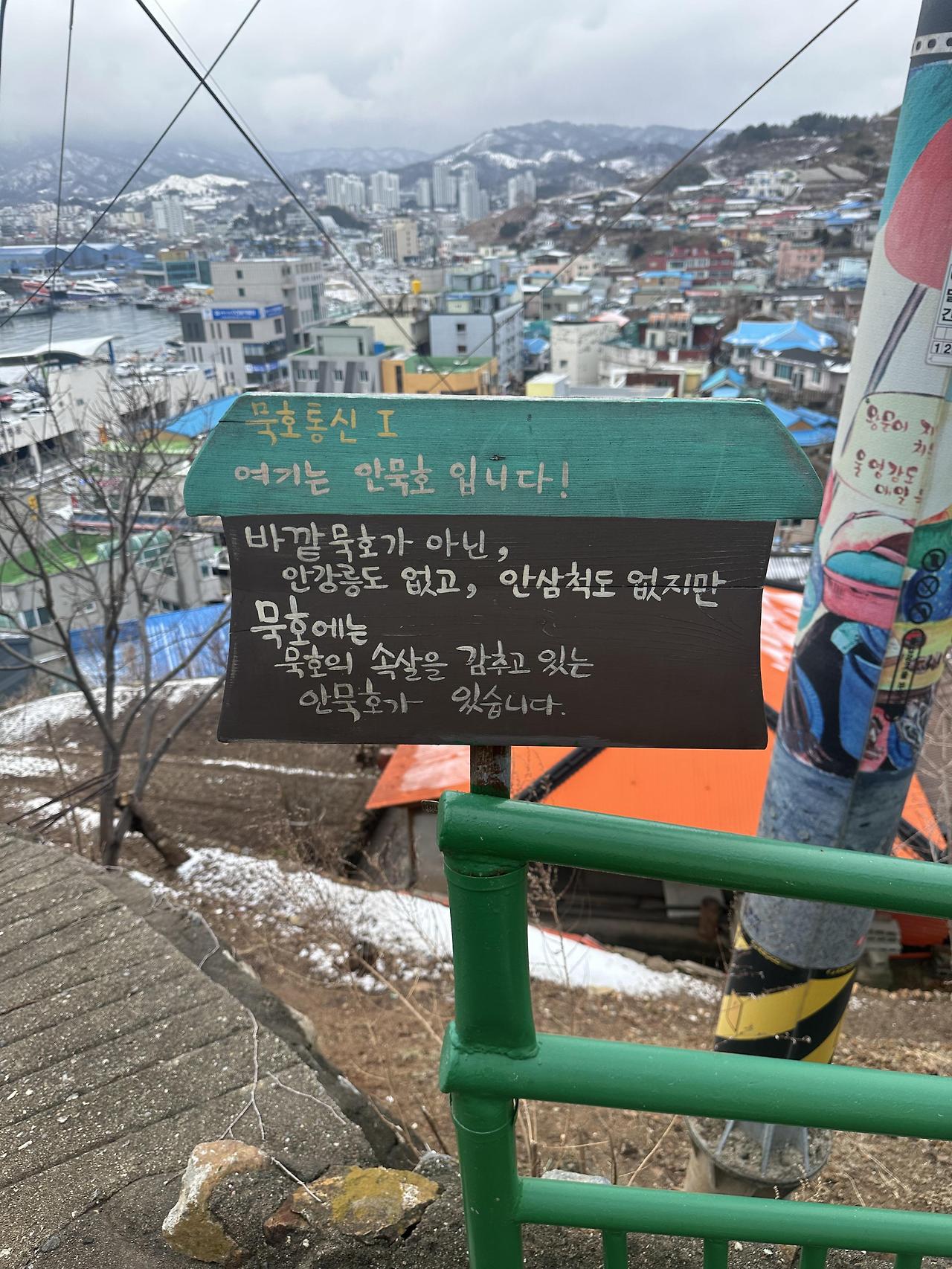 2024년 시작과 함께 지난 2월초에 강원도 묵호로 겨울 여행을 다녀왔습니다. 지난번 여행에도 소개했지만 묵호는 드라마 통해서 알게 되었습니다. 그리고 2018년 겨울에 혼자서 강릉여행을 떠나 강릉에서 묵호 논골담길에 왔는데요. 논골담길에서 머무를 숙소를 찾는데 언덕위에 동해바다와 전망좋은 게스트하우스를 발견했습니다. 그리고 2018년과 2019년 두번 방문을 했는데요. 수도권에서는 볼 수없는 높은 언덕 위에 오르면 동해바다와 산이 보입니다. 저는 묵호 논골담길에 주로 겨울에 방문했는데요. 강원도는 다른 지역보다 눈이 더 자주 내리는 지역이다보니 언덕 위에서 바라보는 묵호는 눈과 함께 더 멋있었습니다. 올해는 기회가 된다면 여름에 묵호를 한번 더 다녀올까 생각중입니다.