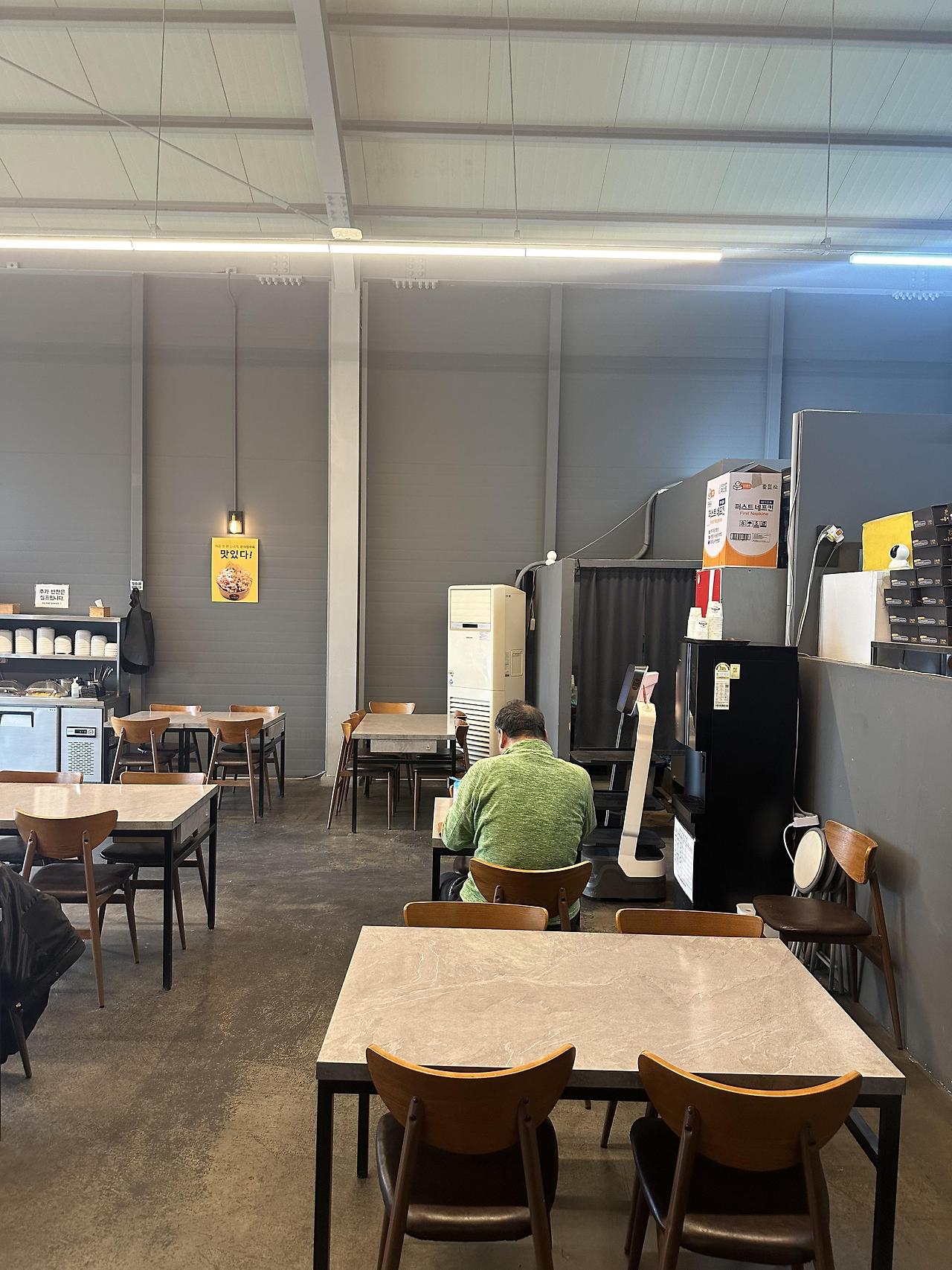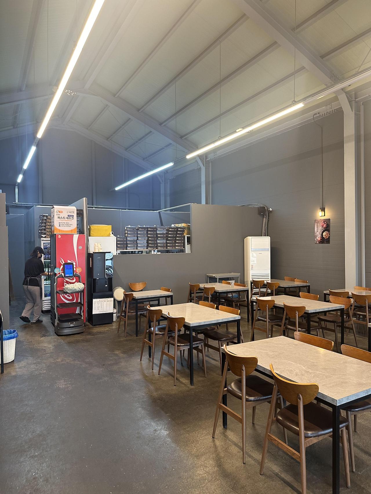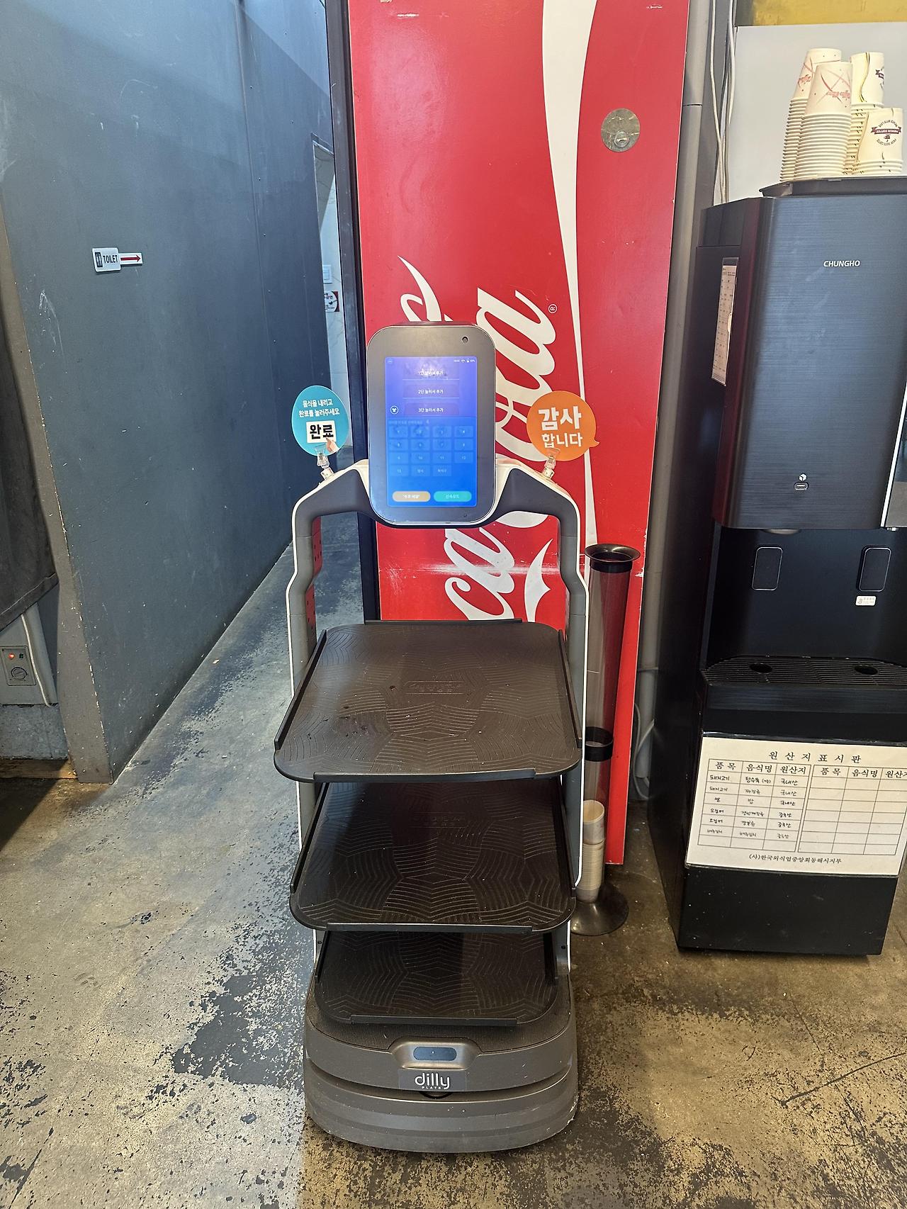 - 가게 자체가 무인이에요. 무인서빙로봇이 직접 손님에게 음식을 전달하고 있습니다. 그러나 1인의 경우 주문량이 많지 않기 때문에 무인로봇이 아닌 직원이 직접 갖다주는 경우도 있어요.