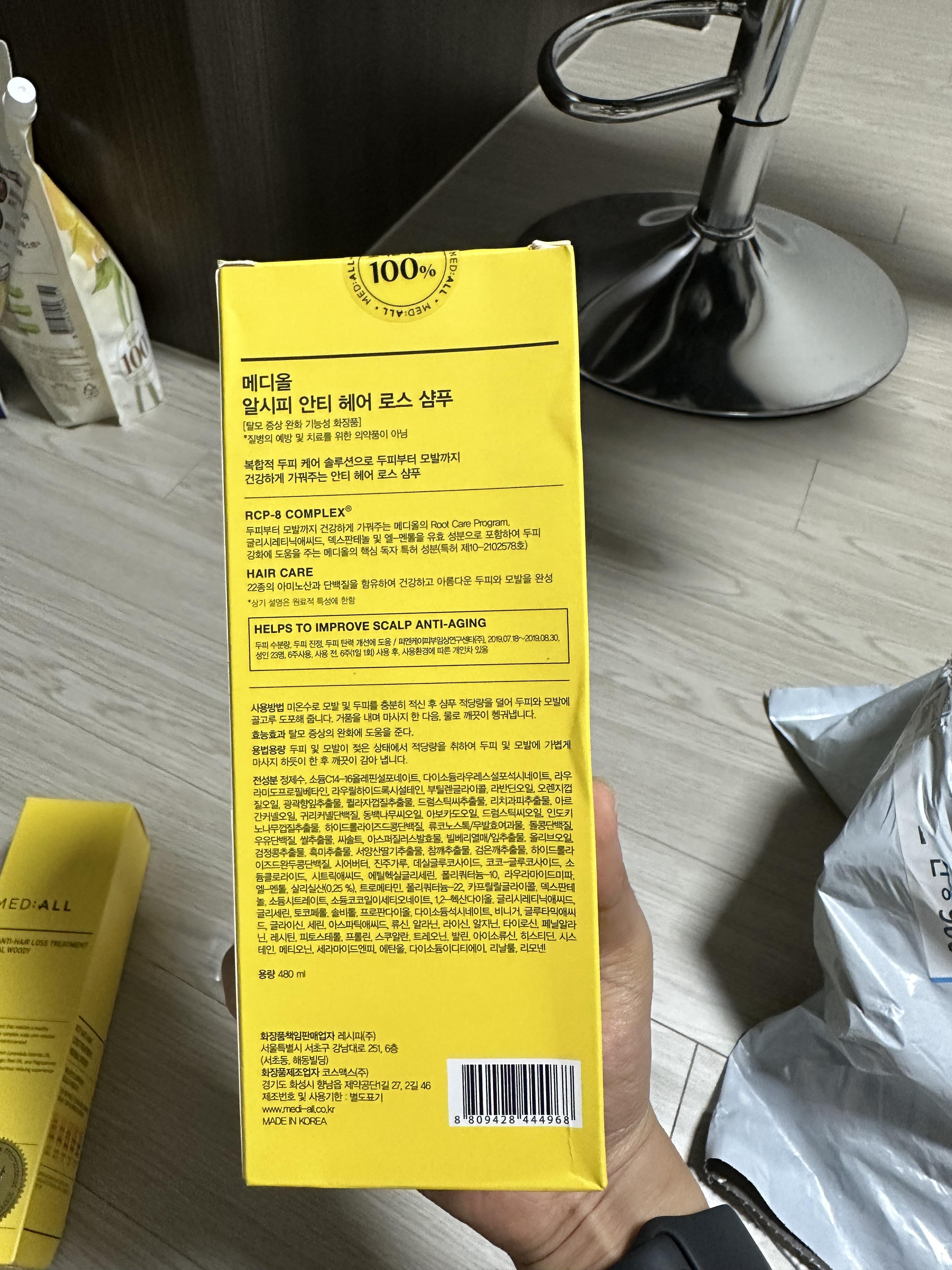 쿠팡 포장 비닐봉지에서 제거해서 꺼내보았습니다. 아무래도 차량에 싣고 이동하기 때문인지 메디올 샴푸와 트리트먼트 상자가 약간 구겨진것을 볼 수 있습니다. 받는 사람 입장에서는 제품의 와관이더라도 이렇게 구겨져있다면 기분이 좋지 않을 수 있지만요 아무래도 배달서비스라서 외관이 조금 구겨진건 이해가 필요할 것 같습니다. 중요한것은 박스보다 안에 물건이 제대로 왔는지가 중요하겠죠.
