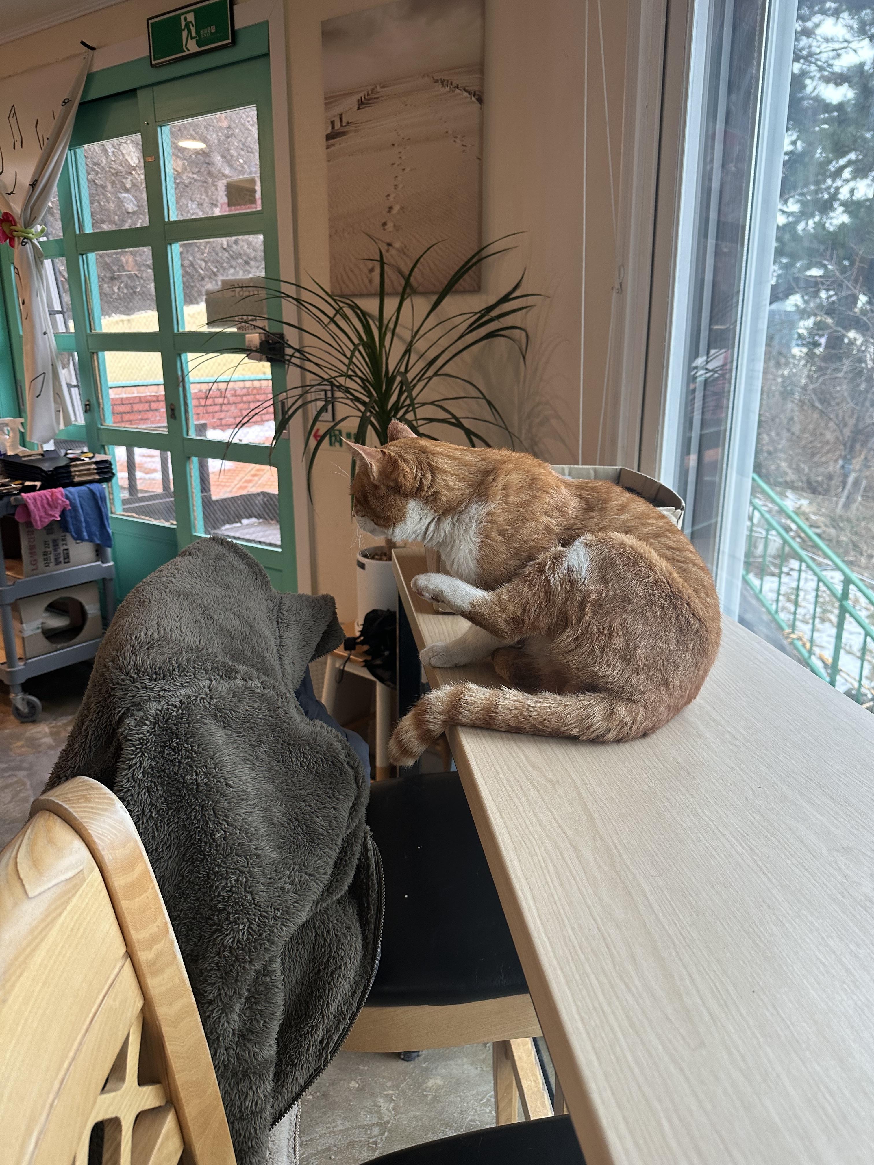 길고양이같은데요 게스트하우스 밖에서만나면 도망가기 바쁜데 장소가 다르더라도 게스트하우스 안에서는 만져도 도망가지도 않고 편한것 같았습니다. 103LAB 게스트하우스를 찾는 게스트들이 힐링과 편안함을 위해 찾는것처럼 고양이들도 이곳에 편하게 와서 피해주지 않고 휴식을 취하는 모습을 보니 사람과 동물은 말만 못할뿐이지 다 똑같은것 같습니다.