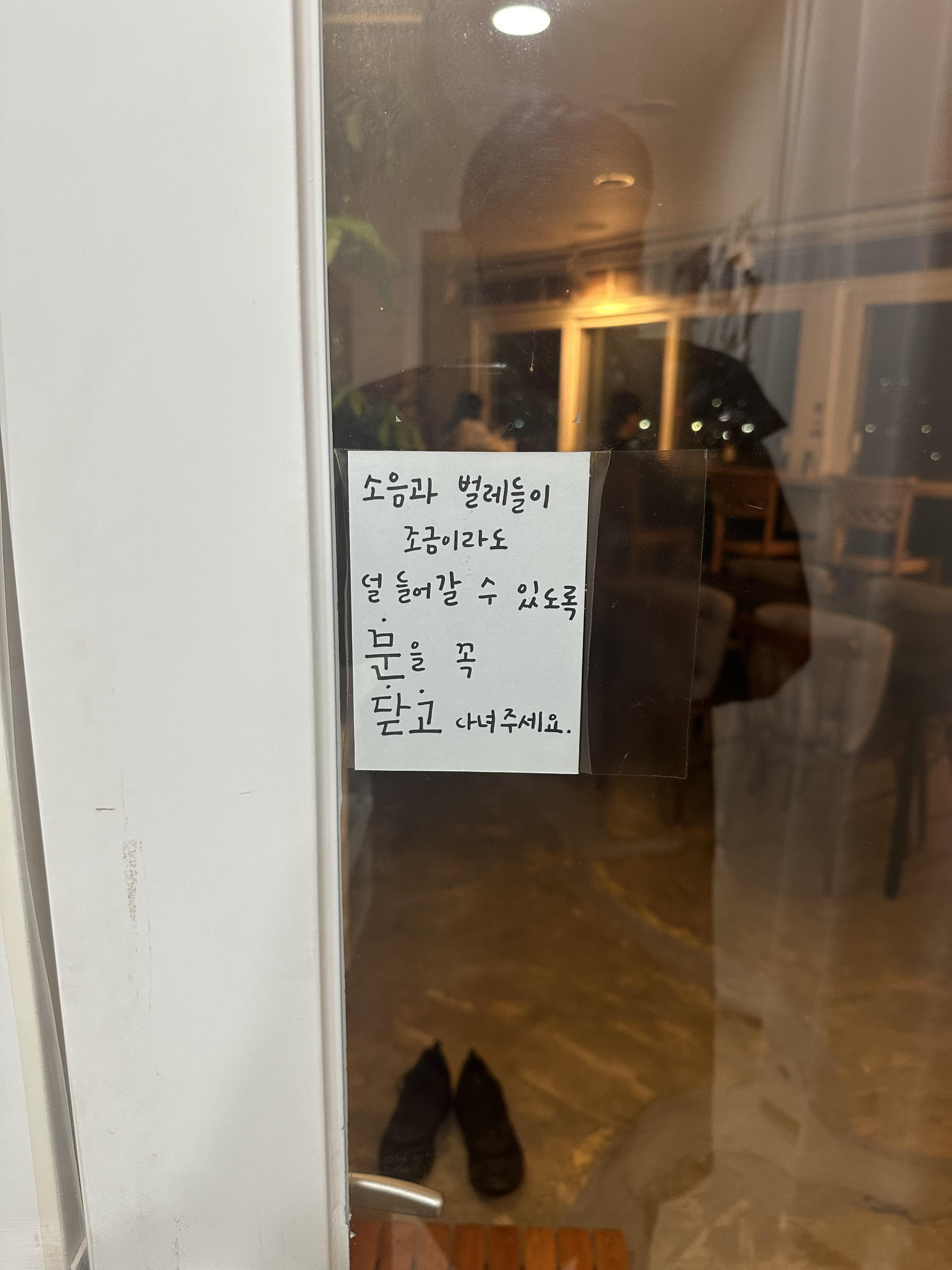 - 체크인 시 게스트하우스 수칙에 위반 시 다음번에 이용 못할 수 있다는 것에 서명을 받기 때문에 혹시 고요와 정적보다 즐기는 것을 원한다면 다른 게스트하우스를 알아보는게 좋을 것 같습니다.