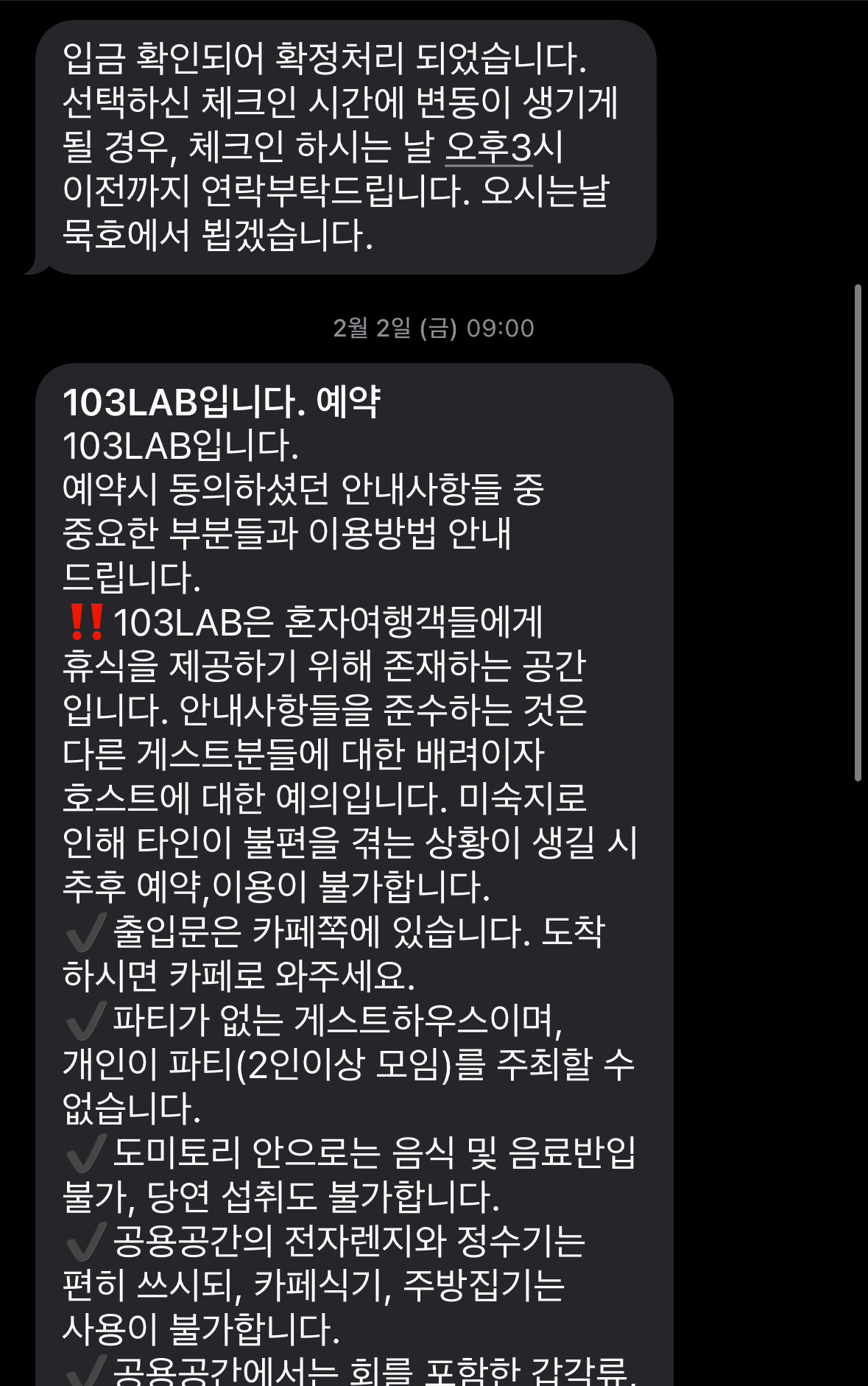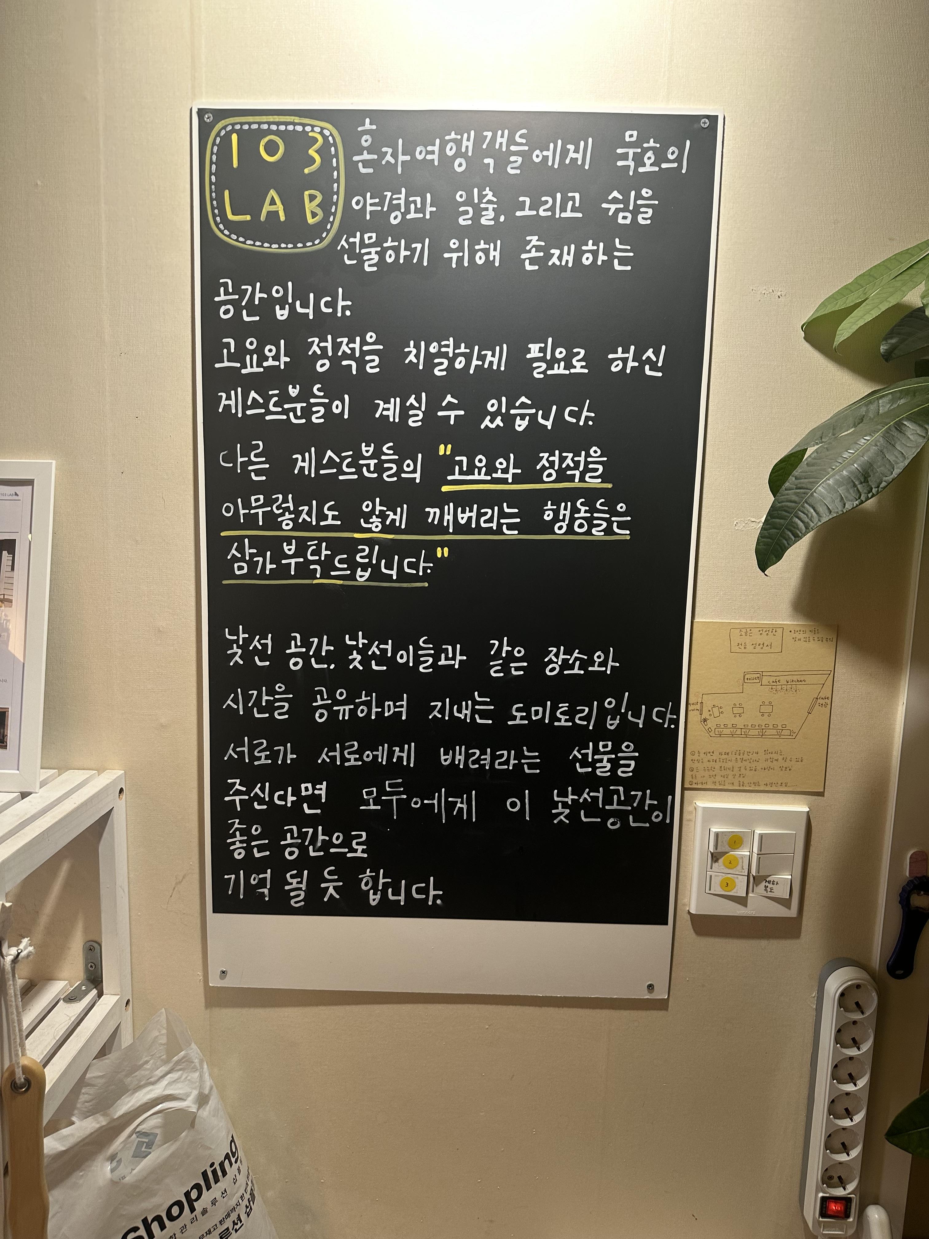 - 다른게스트하우스도 전체 소등 시간이 있지만 103LAB게스트하우스는 소등시간이 철저합니다