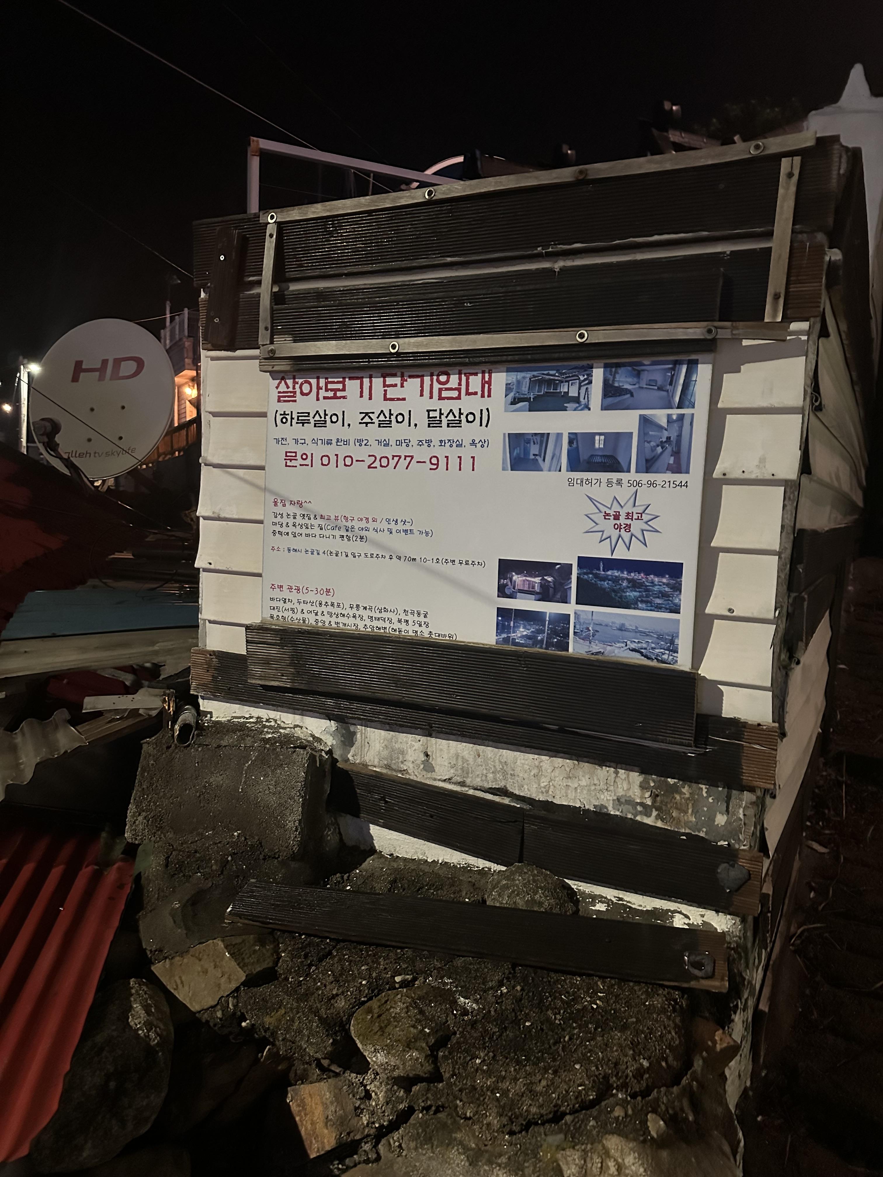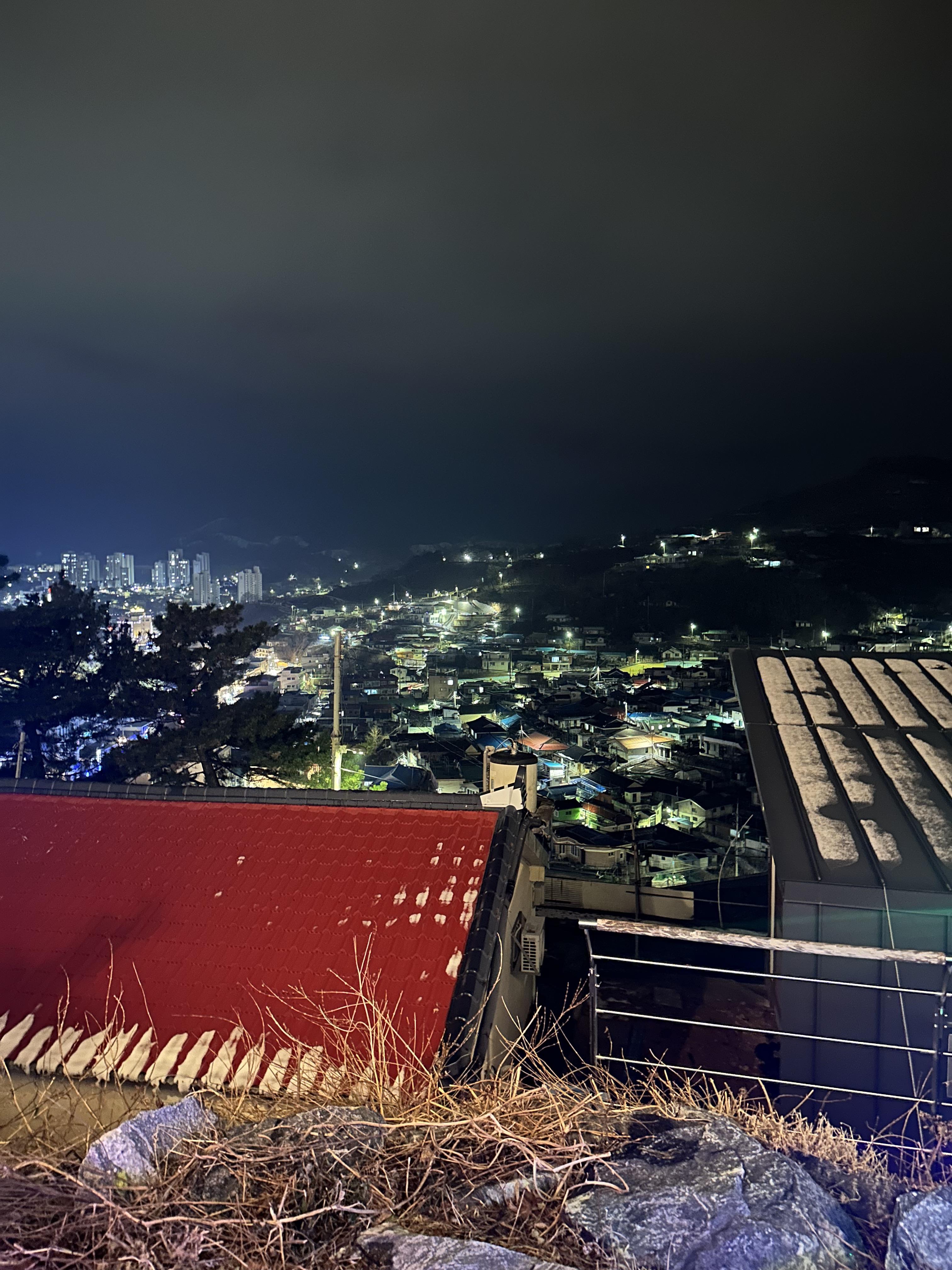 어두워진 논골담길 골목을 올라서 103LAB게스트하우스에 도착했습니다. 103LAB게스트하우스는 다른 후기를 찾아봐도 그렇지만 논골담길을올라서 도착하면 밤에는 묵호의 밤바다와 조용한 묵호의 밤을 볼 있습니다. 묵호의 조용한 분위기답게 103LAB게스트하우스도 정말 조용하기로 유명합니다.