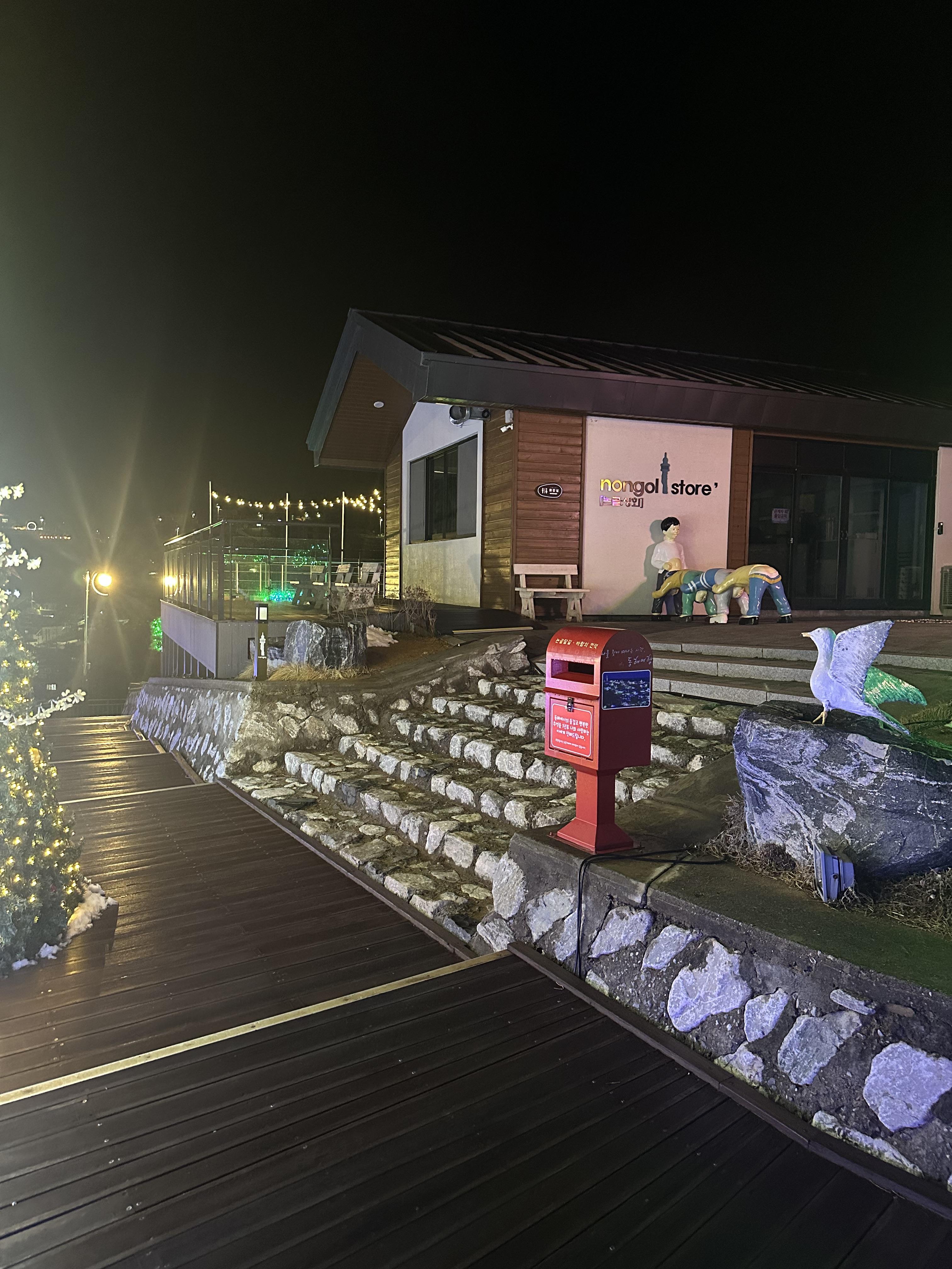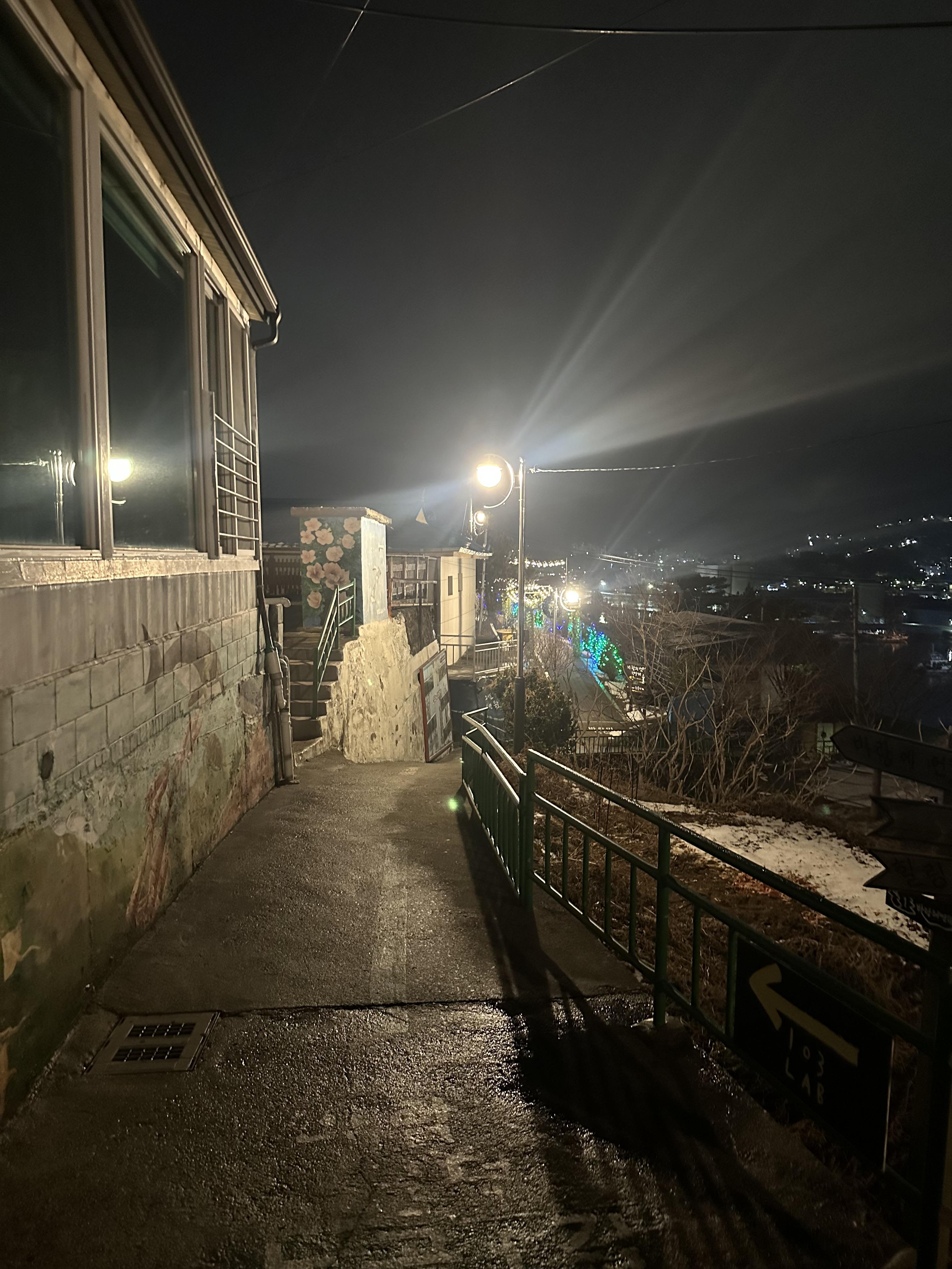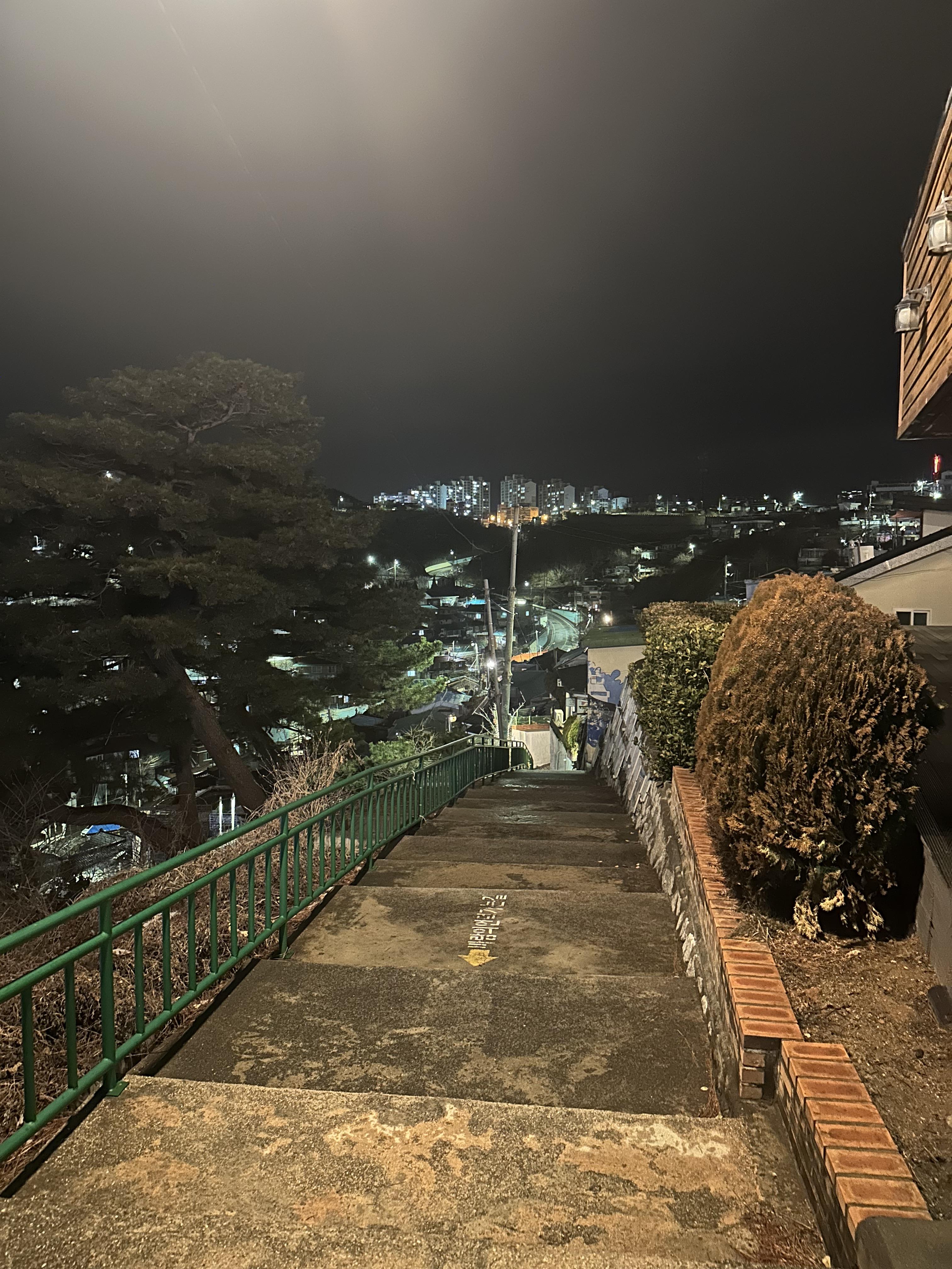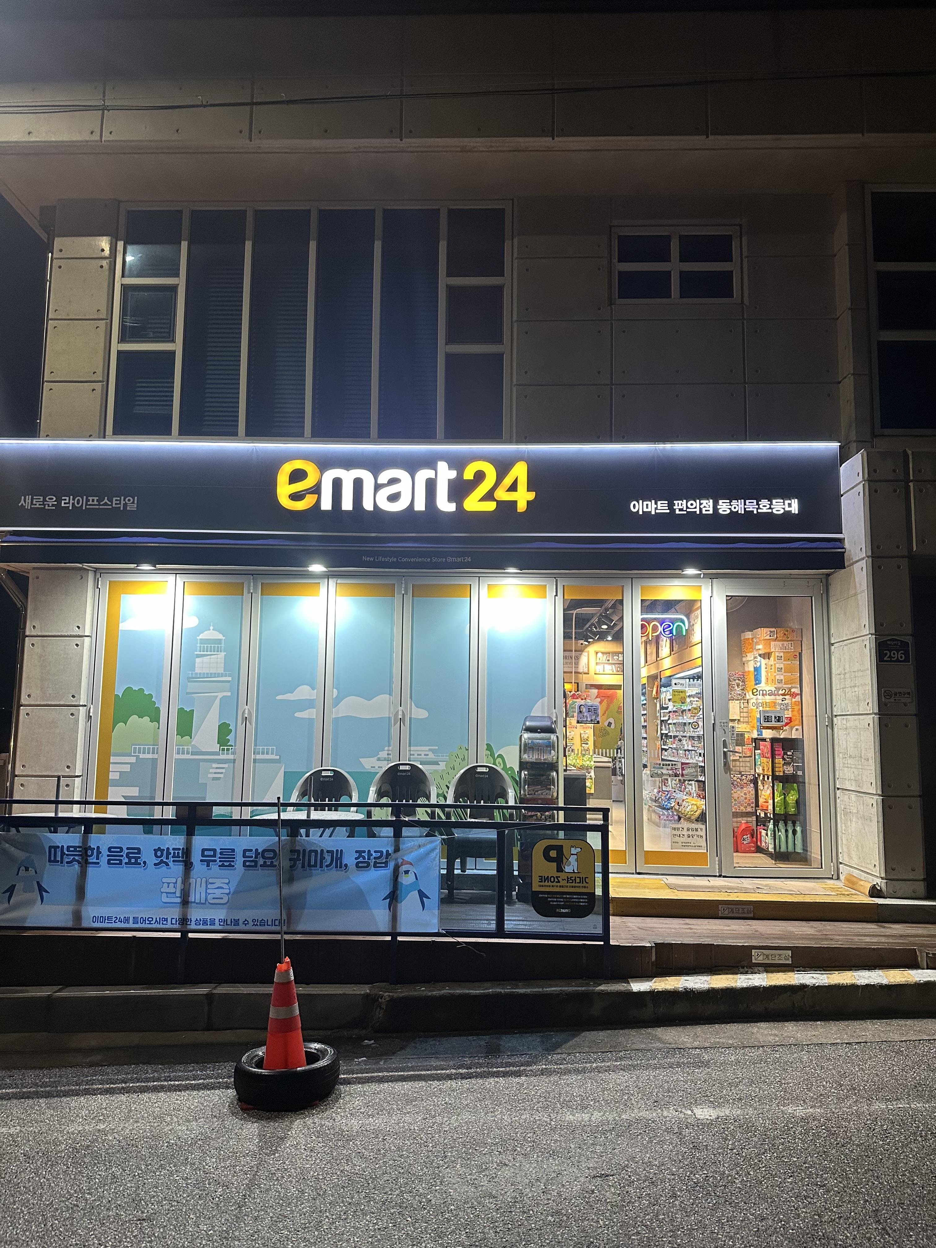 게스트하우스 체크인을 통해 입실을 하고 샤워를 했습니다. 그리고 묵호의 밤을 즐기 위해 논골담길 골목길을 조용히 돌아다녔습니다. 논골담길 위쪽으로 올라가면 묵호 등대가 나옵니다. 등대까지는 빠른걸음으로 5분도 채 걸리지 않습니다. 아까 103LAB게스트하우스 정보 전달드리면서 주차에 대해서도 알려드렸는데요 등대 입구 올라가면 멀지 않은 곳에 이마트24가 보이구 그 골목에 주차 하시면 됩니다. 저는 그렇게 묵호의 조용한 밤바다를 돌아다녔는데요. 묵호 논골담길에도 주변에 아파트가 있지만 다른 지역에 비해서는 정말 조용했습니다. 묵호 논골담길을 한바퀴 돌고 편의점에서 맥주 한잔을 구매해서 묵호항 수변공원에서 맥주를 마시고는 103LAB게스트하우스에 입실을 했습니다. 그리고 그렇게 하루를 마무리 했습니다.