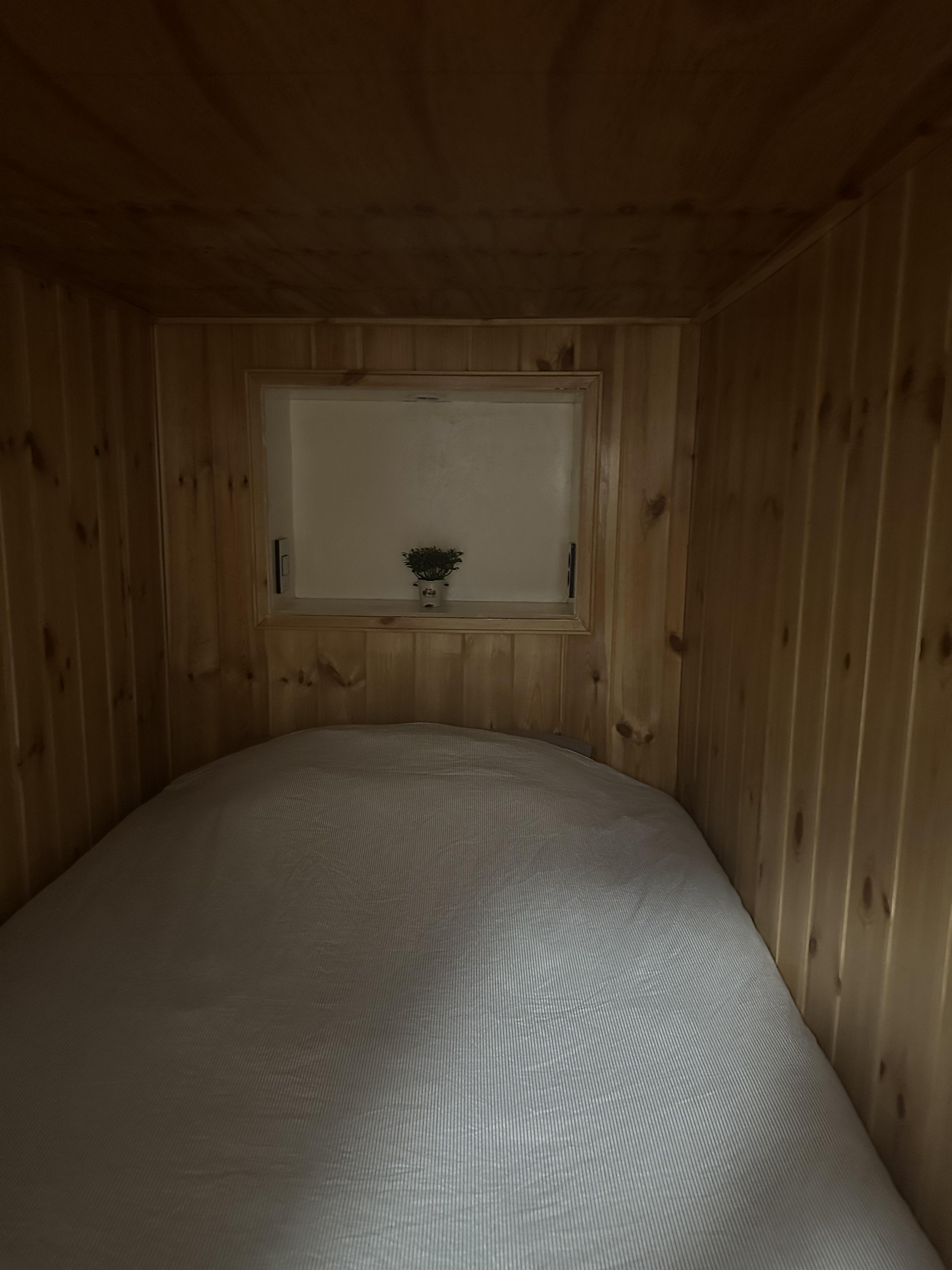 - 캡슐형 침대로 침대안에 콘덴서와 전등이 갖추어져있어서 프라이버시한 느낌을 받을 수 있습니다.