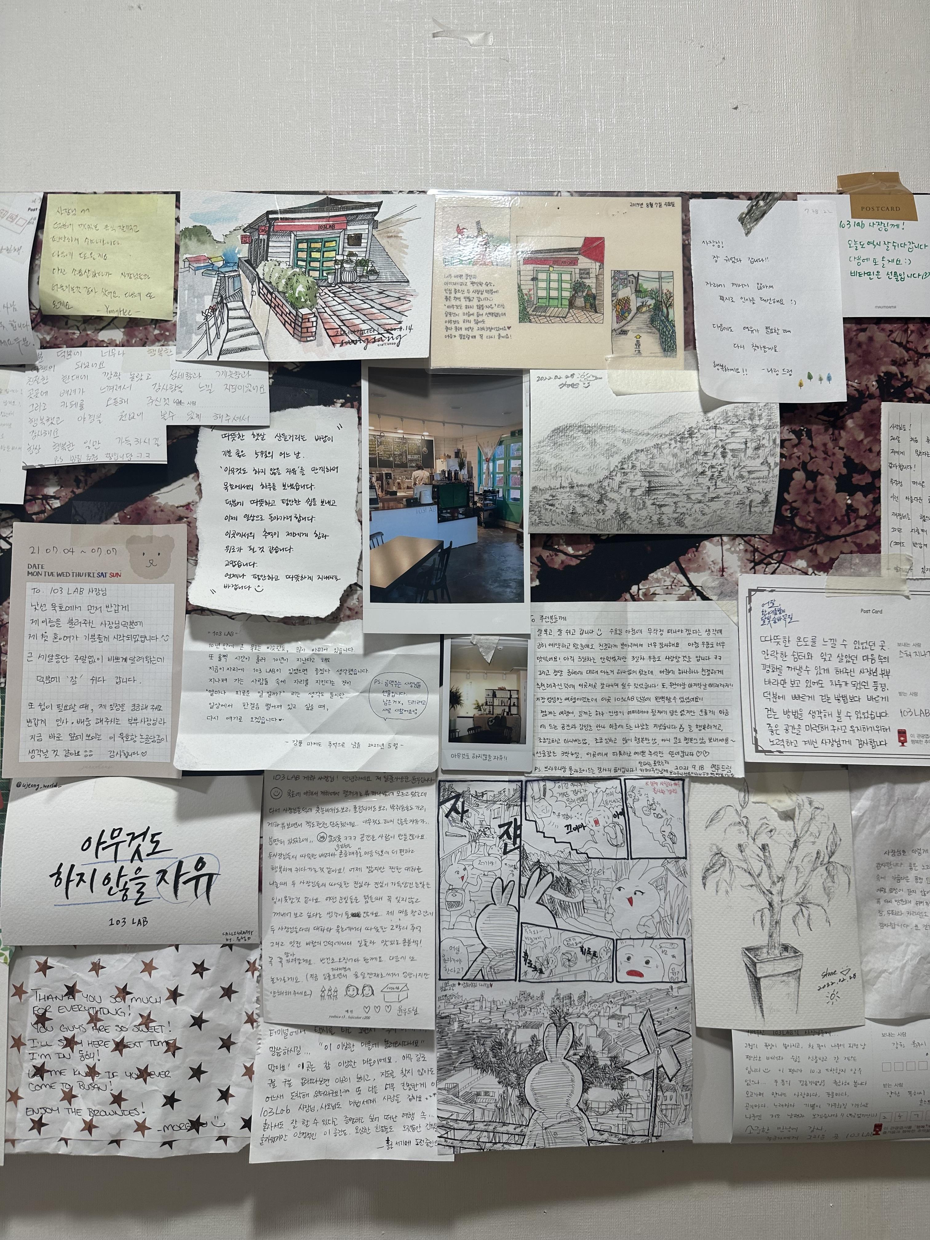 103LAB 카페에 창문 앞에 자리를 잡고 게스트하우스를 돌아봅니다. 그리고 처음 103LAB 게스트 왔을 때를 떠올리게 됩니다. 처음왔을 때나 지금이나 103LAB 게스트는 작고 넓지 않은 공용공간과 프라이버시한 개인 침대였습니다. 그리고 그것이 103LAB 게스트하우스를 찾는 이유였던것 같습니다. 벽면에는 아무것도 하지 않을 자유라는 글씨가 적혀있었습니다. 바쁜 현대 사회속에서 학업과 업무로 인해 지친 나에게 이곳에서만큼은 아무거도 하지 않고 묵호를 통해 휴식을 취하는 정말 좋은 장소같습니다.