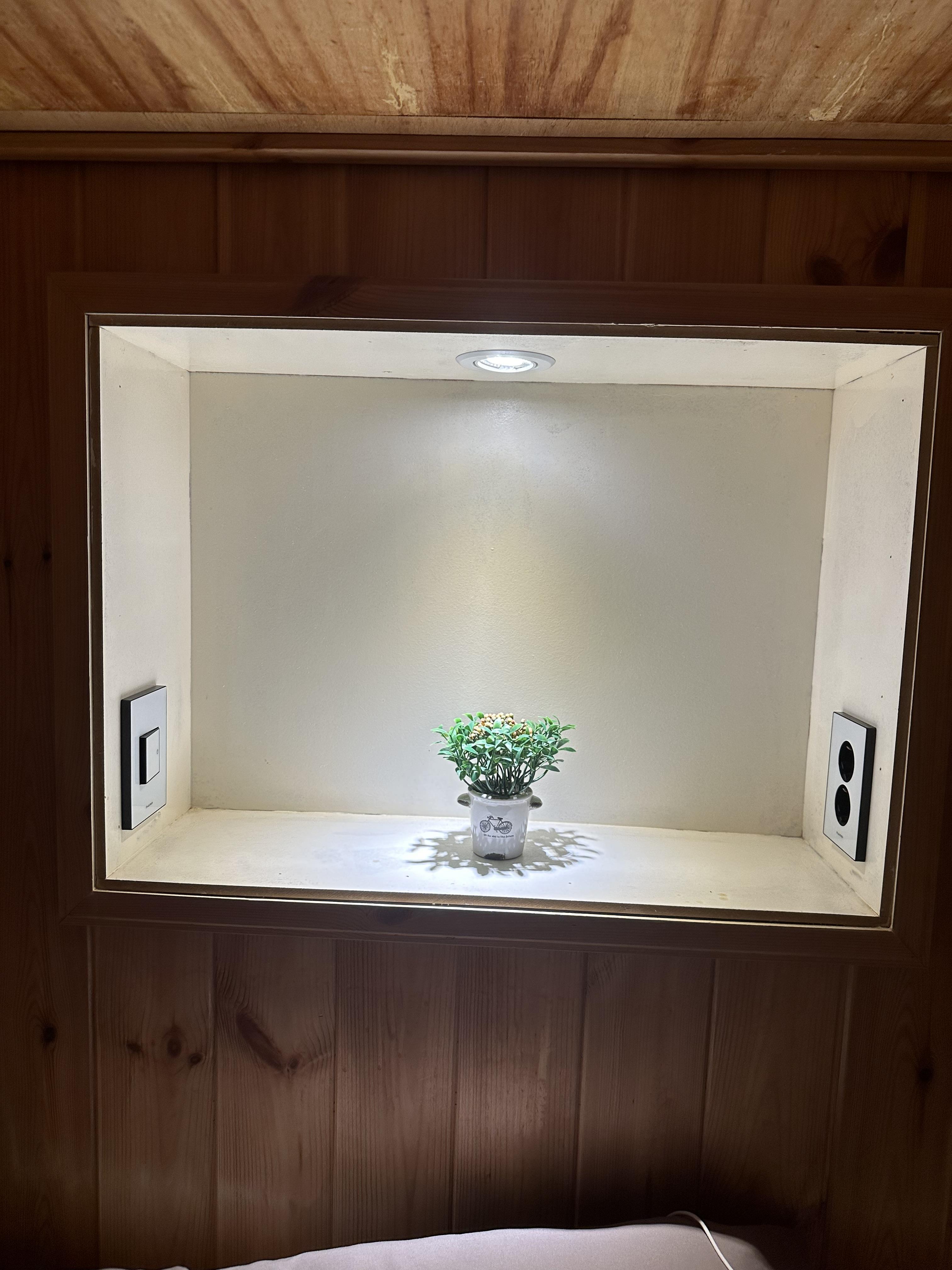 - 침대 안쪽에는 개인전등과 함께 콘덴서 비치