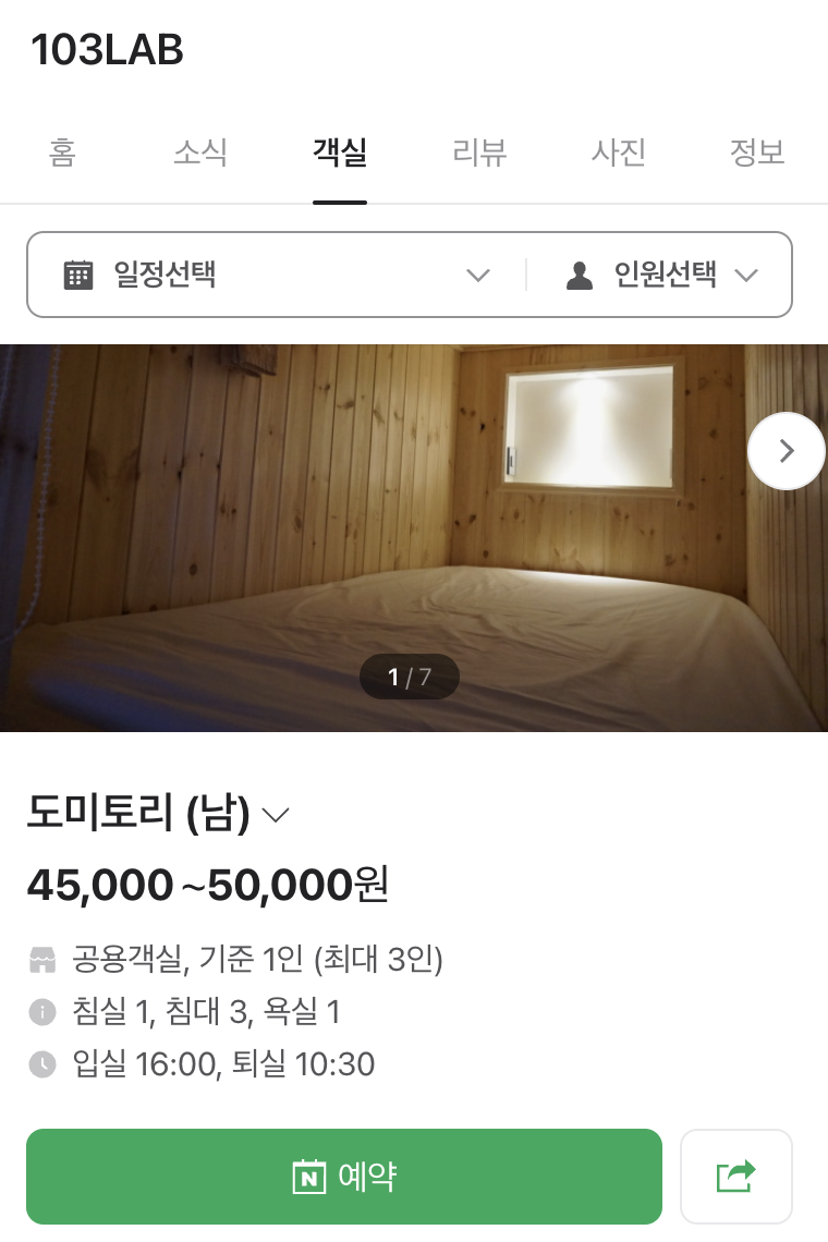 - 객실은 남녀 도미토리룸 6인실 각각 하나씩 있습니다.