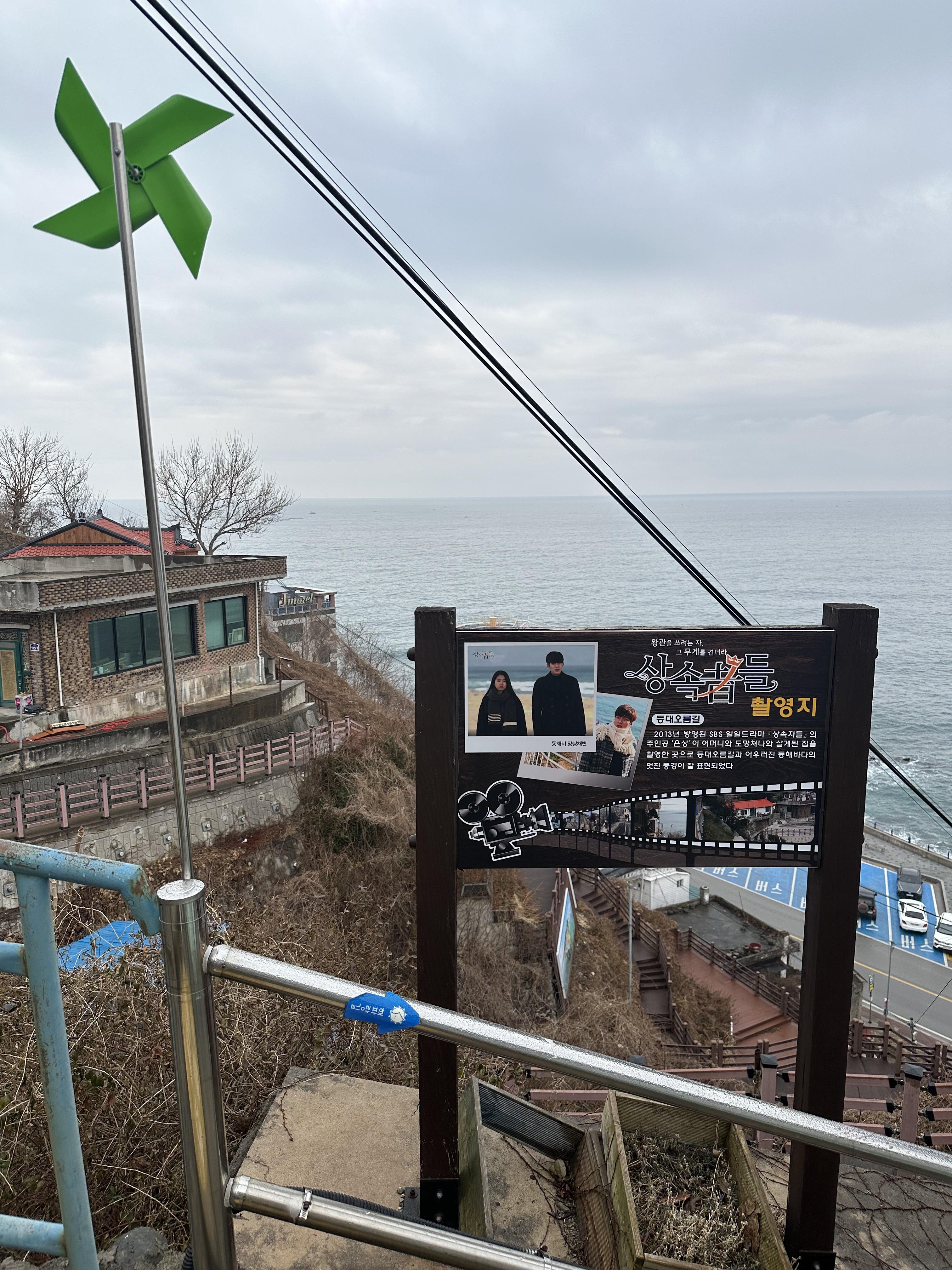저는 2014년 SBS 드라마 상속자들을 보고 왔었습니다. 드라마 주인공 차은상(배우 박신혜)이 부자집 도련님 김탄과 함께 살다가 사정상 바다 근처로 도망쳐왔는데요. 그리고 차은상을 찾기 위해 주인공 김탄(배우 이민호)와 최영도(배우 김우빈)이 서로 찾으러 와서 만나는 장면이었습니다.