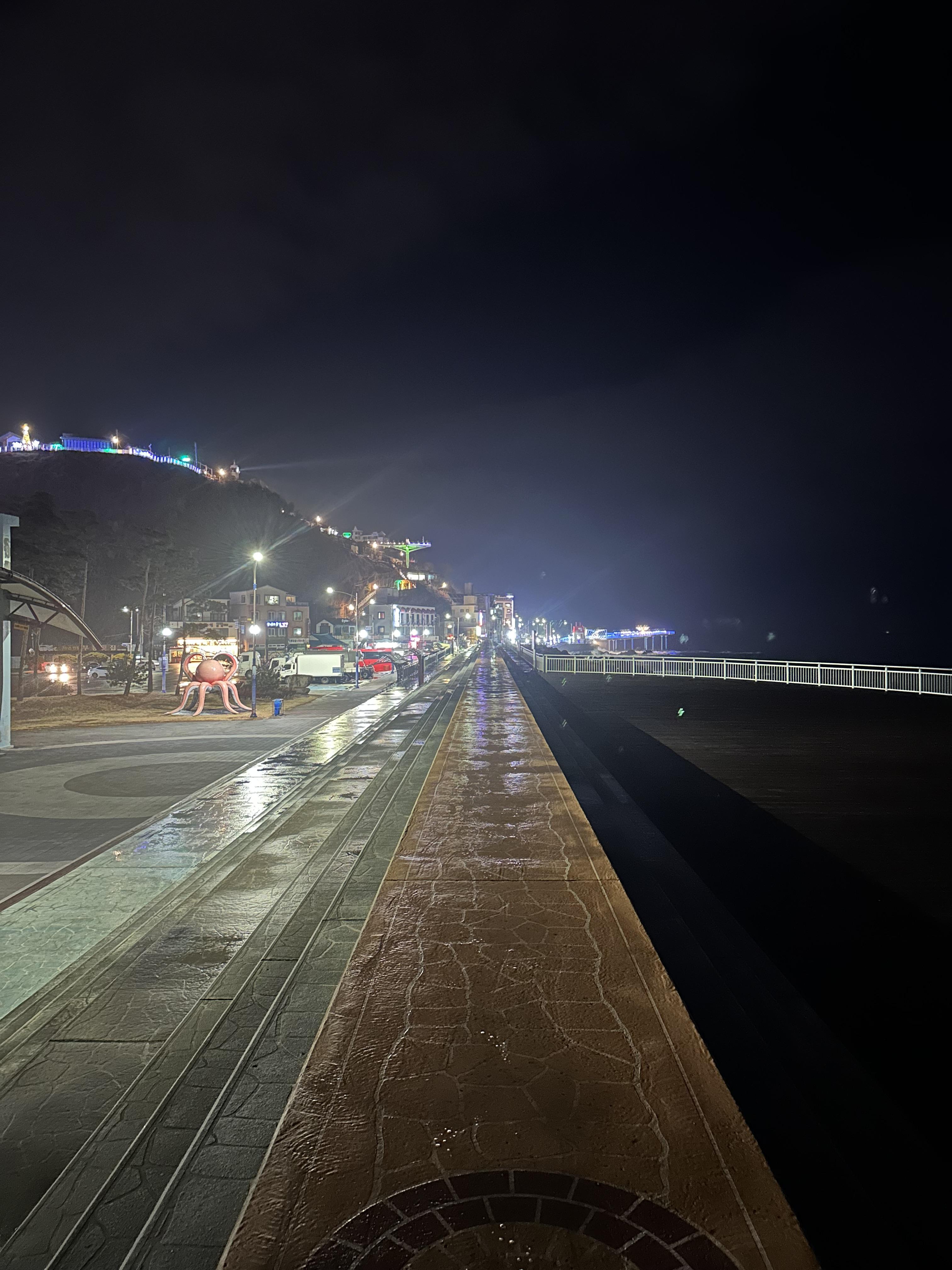 제가 그동안 밤바다를 본다며 돌아다녔던 여수,통영, 부산과는 많이 달랐습니다. 방문했던 요일은 금요일에도 불구하고 묵호 등대는 조용했습니다. 관광객이라고 저 혼자 있었는데요. 묵호도 드라마 촬영지부터 주변 묵호항을 통해 울릉도 갈 수 있는 출발지이기는 하지만 정말 조용한 지역이었습니다. 낮에도 밤에도 사람이 그렇게 많지 않습니다. 어찌보면 논골담길이라는 작은 마을이다보니 사람들이 쉽게 떠들수 없는 것도 한 몫 하는 것일 수 도 있는 것 같습니다.