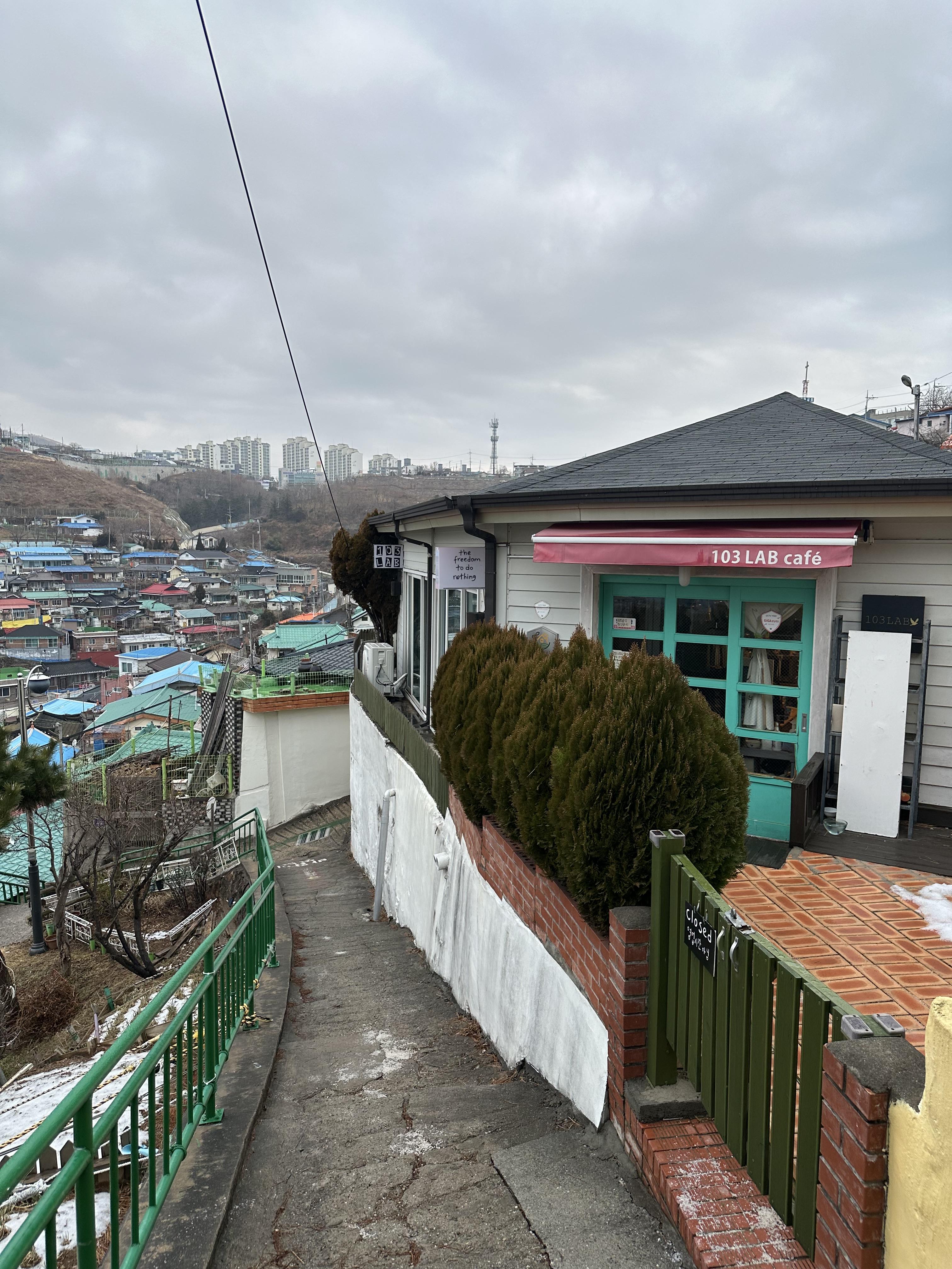 - 버스에서 내려서 논골담길 방향으로 이동하면서 논골담길을 10분정도 오르다보면 103LAB 게스트하우스를 발견할 수 있습니다.
