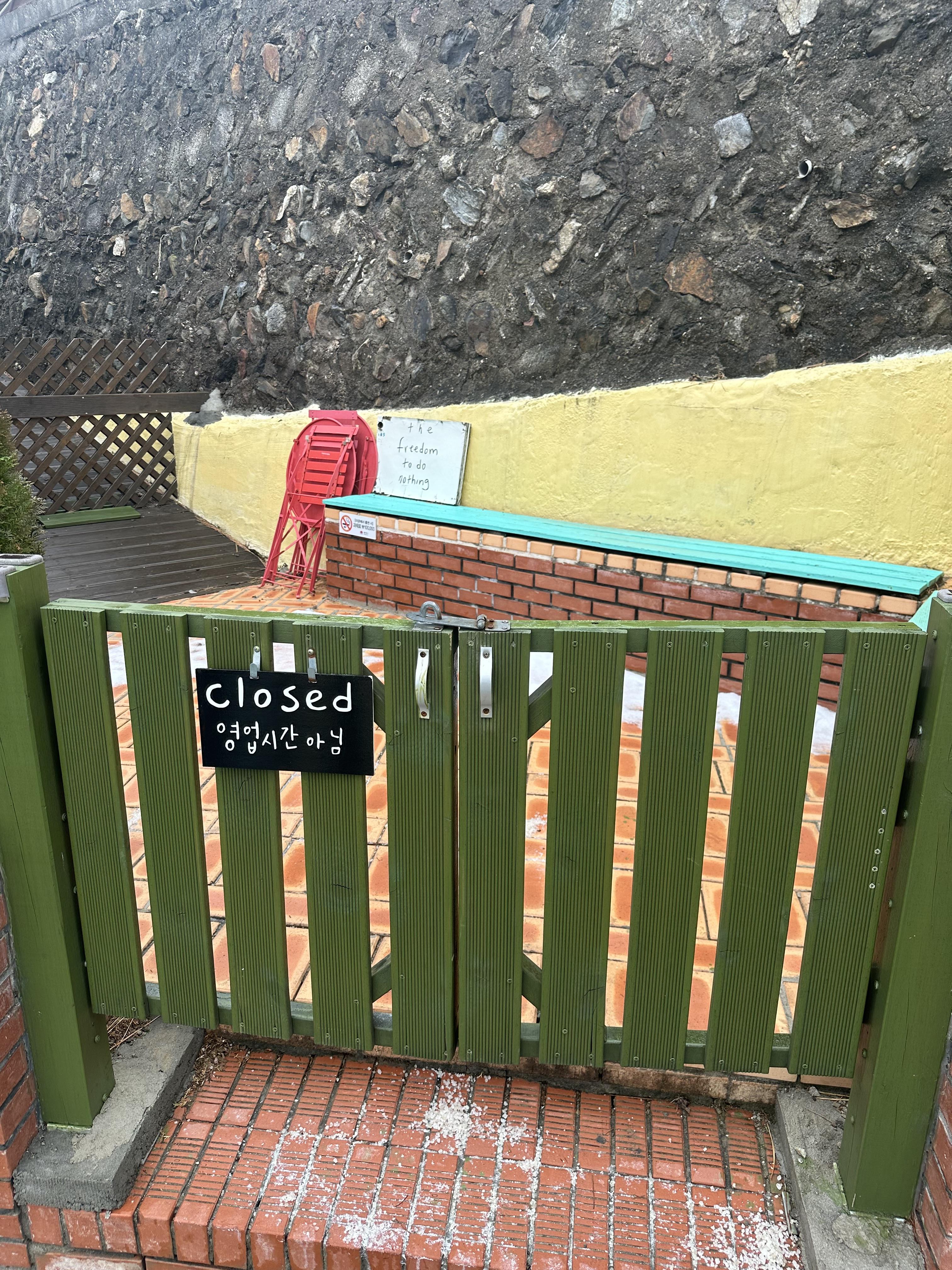 체크아웃 시간에 맞춰서 짐을 정리하고 도째비골 스카이밸리를 구경해야겠다 싶어서 저는 체크아웃전에도 게스트하우스에 짐을 잠시 맡긴채 도째비골 스카이밸로 이동하게 되었습니다. 도째비골 스카이밸리는 2019년 말에 공사 마무리르 하고 있었는데 당시에 보지 못했는데요. 오지못한 기간동안 네이버나 티스토리 블로그를 통해 사람들이 많이들 다녀온 후기들이 보였습니다. 103LAB게스트하우스의 대문입니다. 특히 출입문을 꼭 닫아달라고 하는데 문이 조금이라도 열려있으면 길고양이들디 들어오는것도 있고 그것보단 벌레가 들어오더라구요. 벌레는 남녀노소 누구나 별로 좋아하지 않으니까 꼭 문 닫는게 서로를 위한 배려방법같아요. 근데 문이 정말 잘 안닫혀서 대충 닫을려고 하면 안닫혀지더라구요.