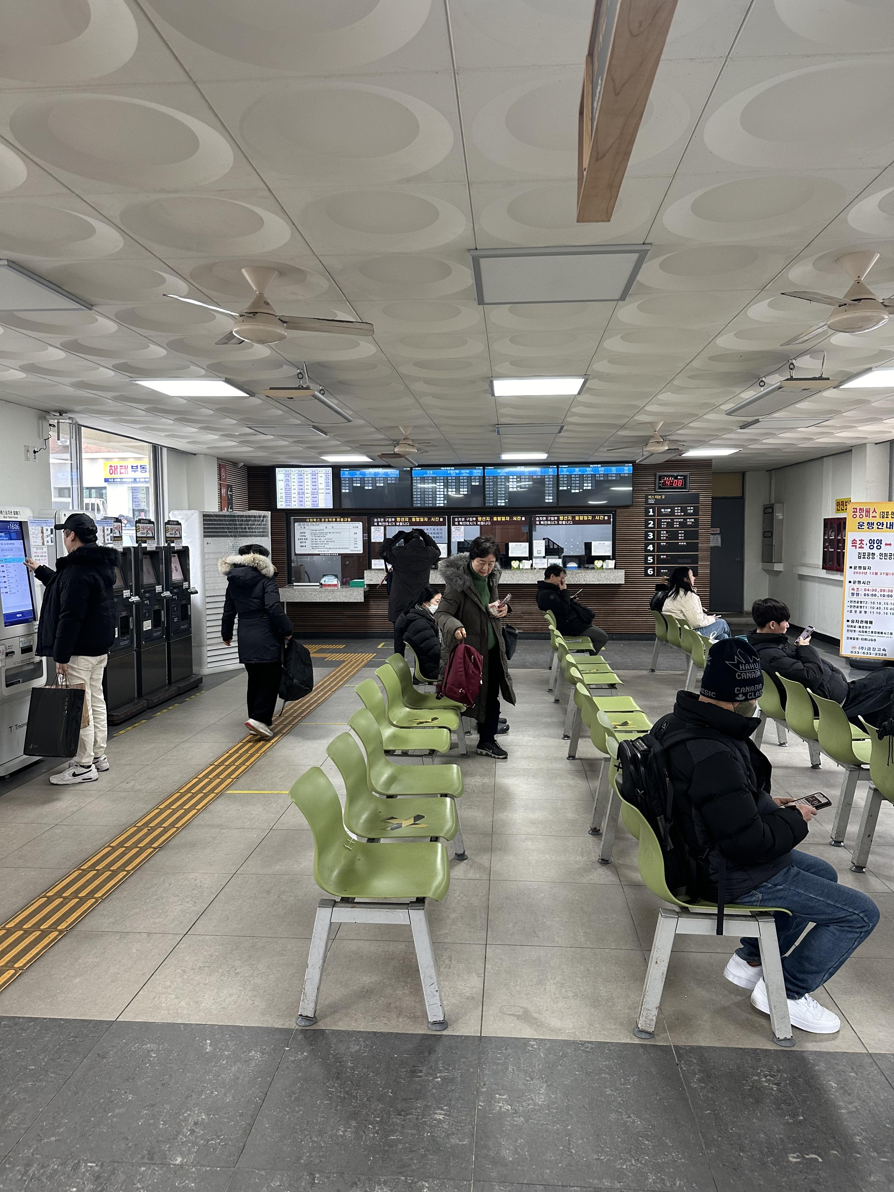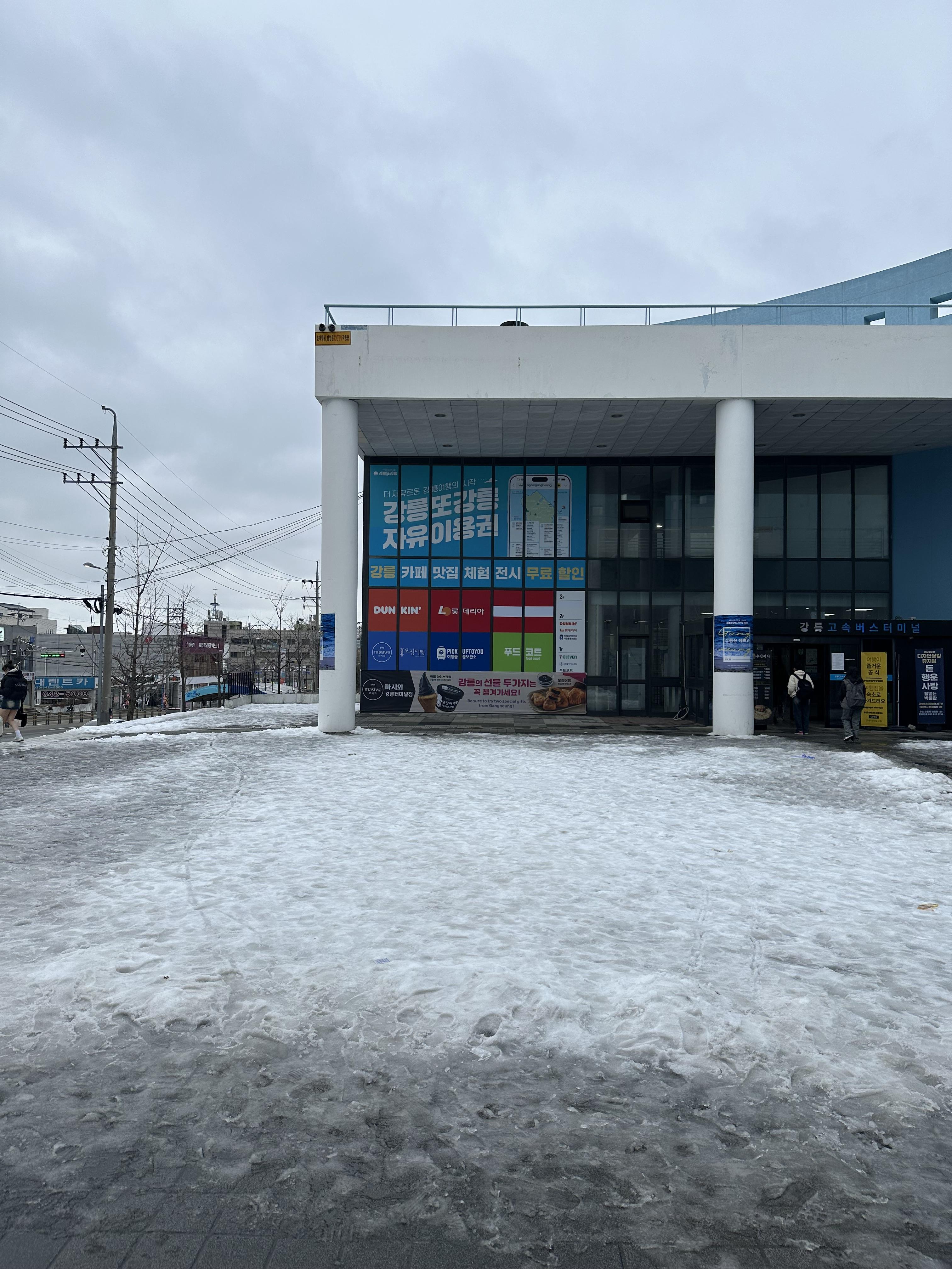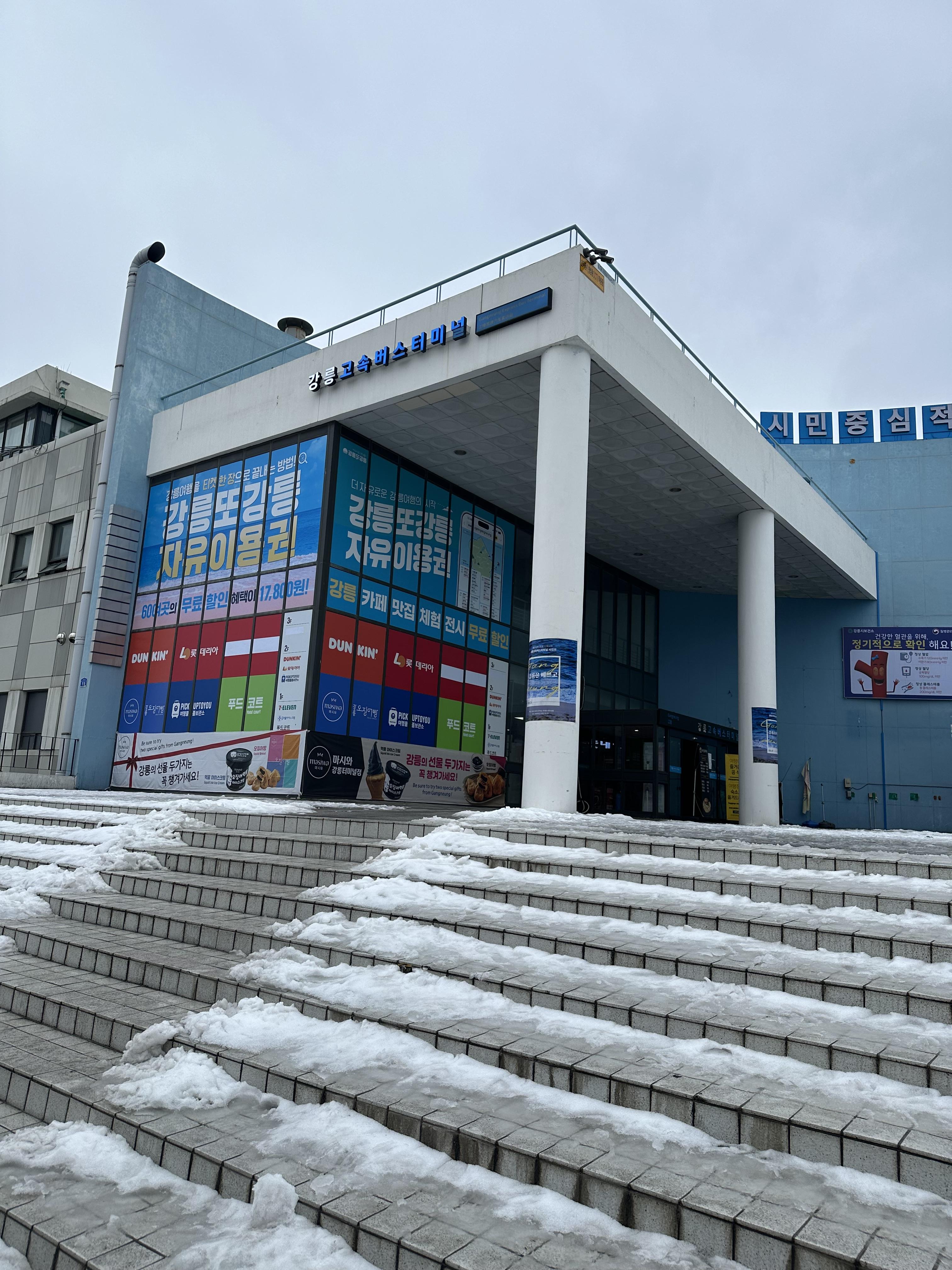 시내버스를 타고 20분 정도 걸려 강릉 터미널에 도착했습니다. 강릉은 강원도 춘천 다음으로 대도시에 속하는 도시입니다. 그래서 터미널 역시 규모가 있었습니다. 강릉역에서 강릉터미널 도착하면 반대편에서 바라보면 좌측에는 강릉 고속버스터미널이 보이며, 우측은 강릉시외버스터미널로 나누어져 있습니다. 지방 도시의 경우 최근 인구 소멸화 문제 이전에도 서울과 같은 대도시 이용이 불편합니다. 그래서 강릉처럼 대도시 터미널로 한번 이동해서 가는 경우가 있습니다. 강원도의 경우 강릉과 춘천이 대도시로서 서울이나 경기도로 가는 노선을 가장 많이 보유하 고있습니다. 이처럼 뚜벅이 여행을 하는 경우에는 지방 도시 중 인구가 많은 대도시를 파악 후 대도시를 환승하여 여행한다면 좀 더 편합니다. 묵호도 대도시는 아니기 때문에 묵호역에서 강릉역을 지나 강릉터미널에서 속초로 이동하게 되었습니다.