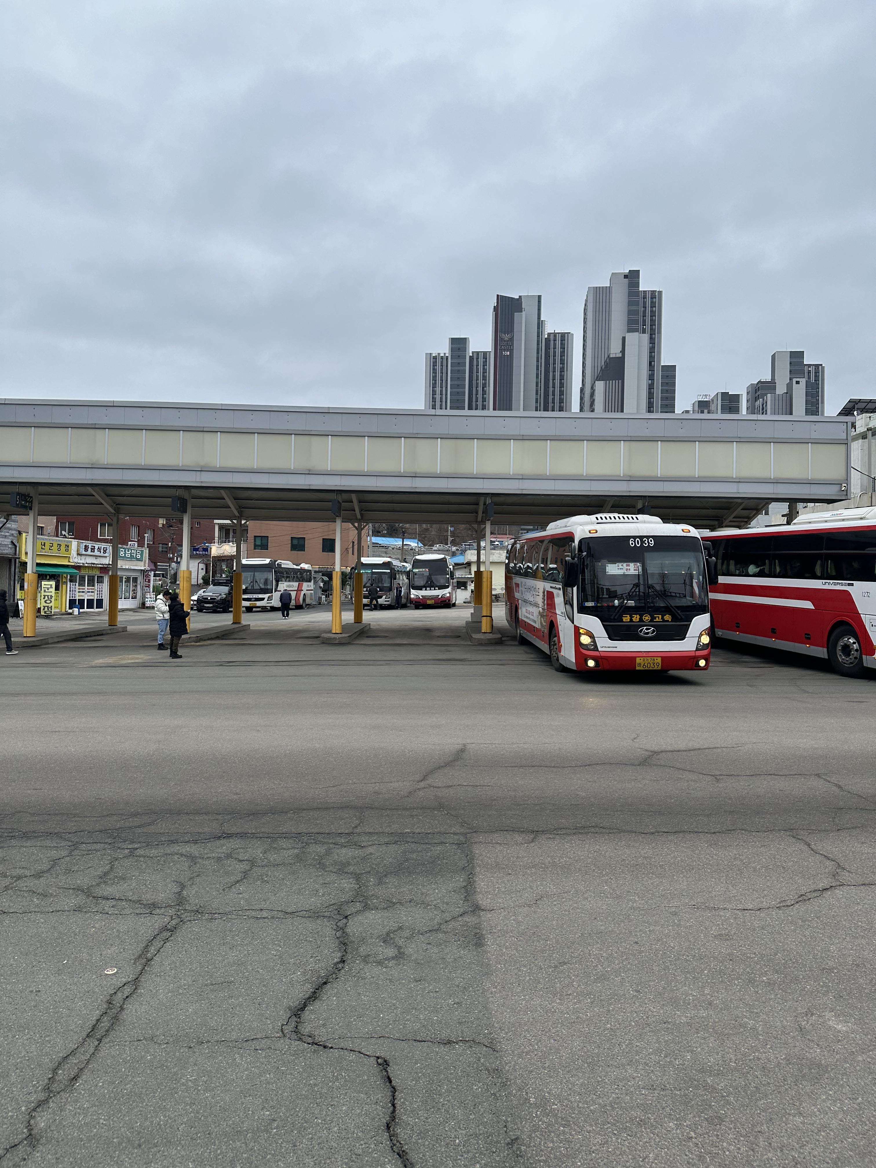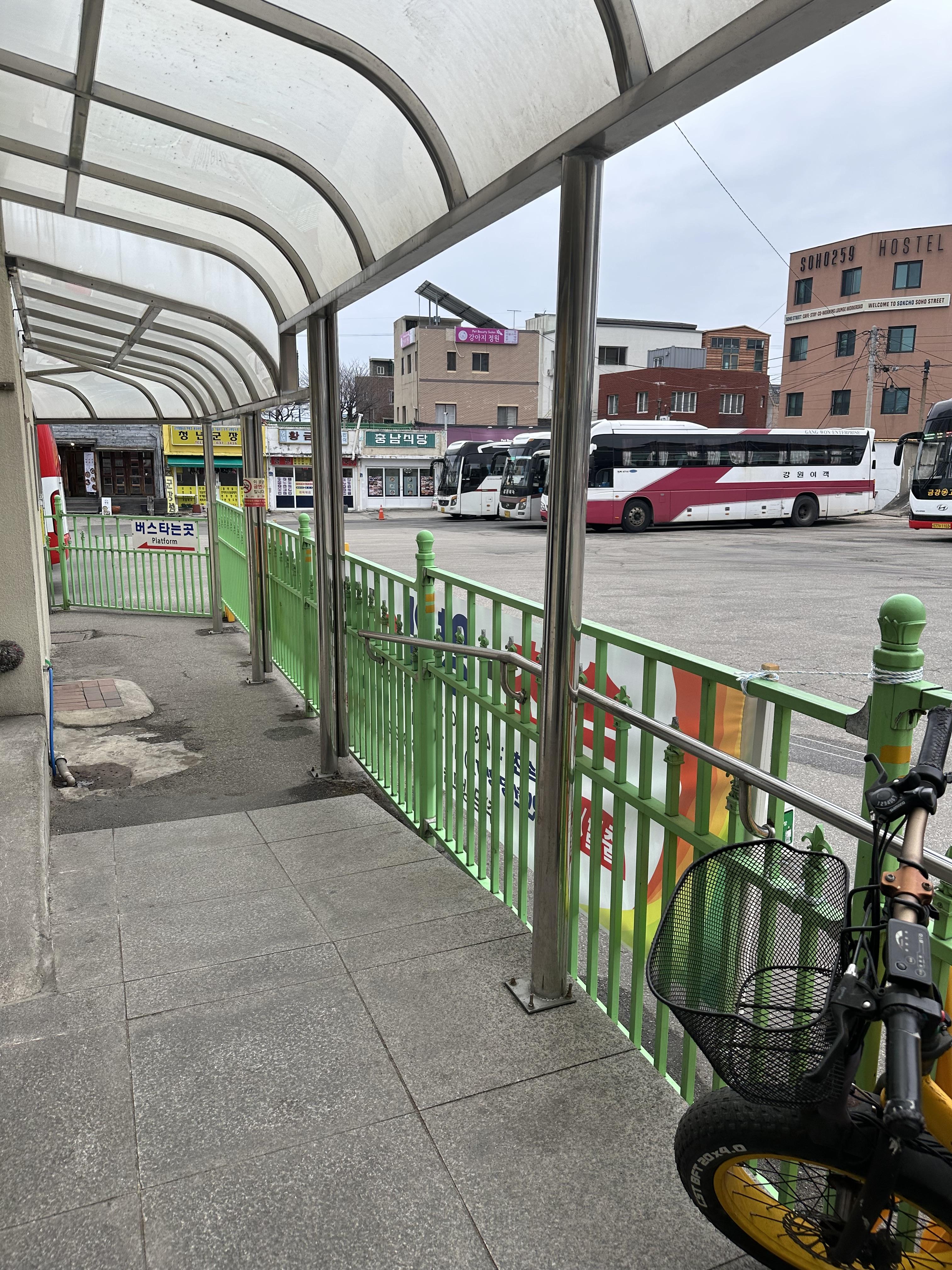 1시간 10분정도 걸려 속초 시외버스터미널에 도착했습니다. 속초 시외버스터미널은 강릉 터미널과 다르게 규모가 작은 터미널이었습니다. 보통 터미널은 승차장도 별도로 마련되어있는데요. 속초시외버스터미널은 다소 위험해 보이는 구조로 승차와 출발이 함께 이루어지는 플랫폼 구조였습니다.