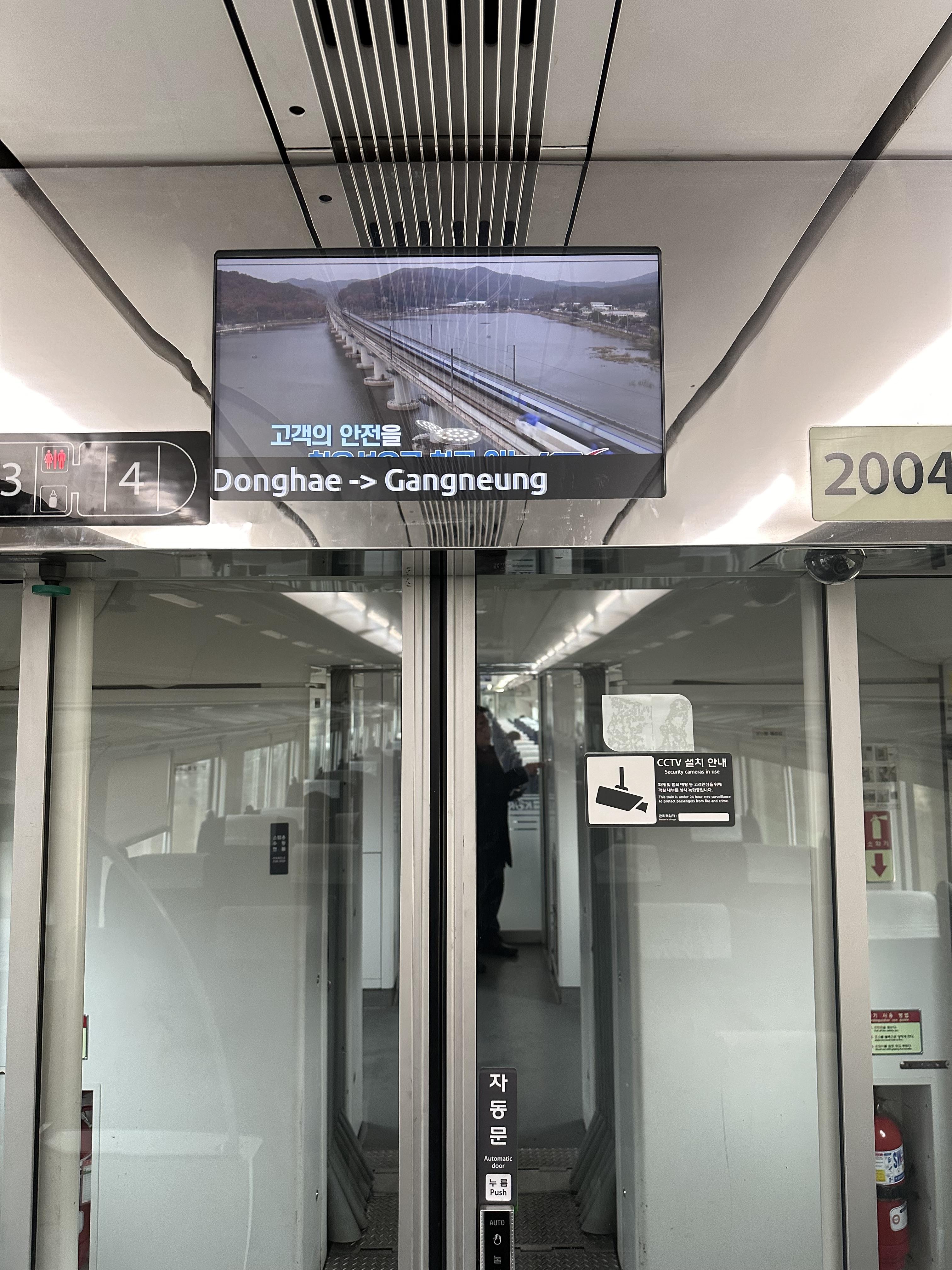 - 객실 가운데와 객실 통로 출입문 위에는 모니터를 통해 현재 열차 정보 확인 가능