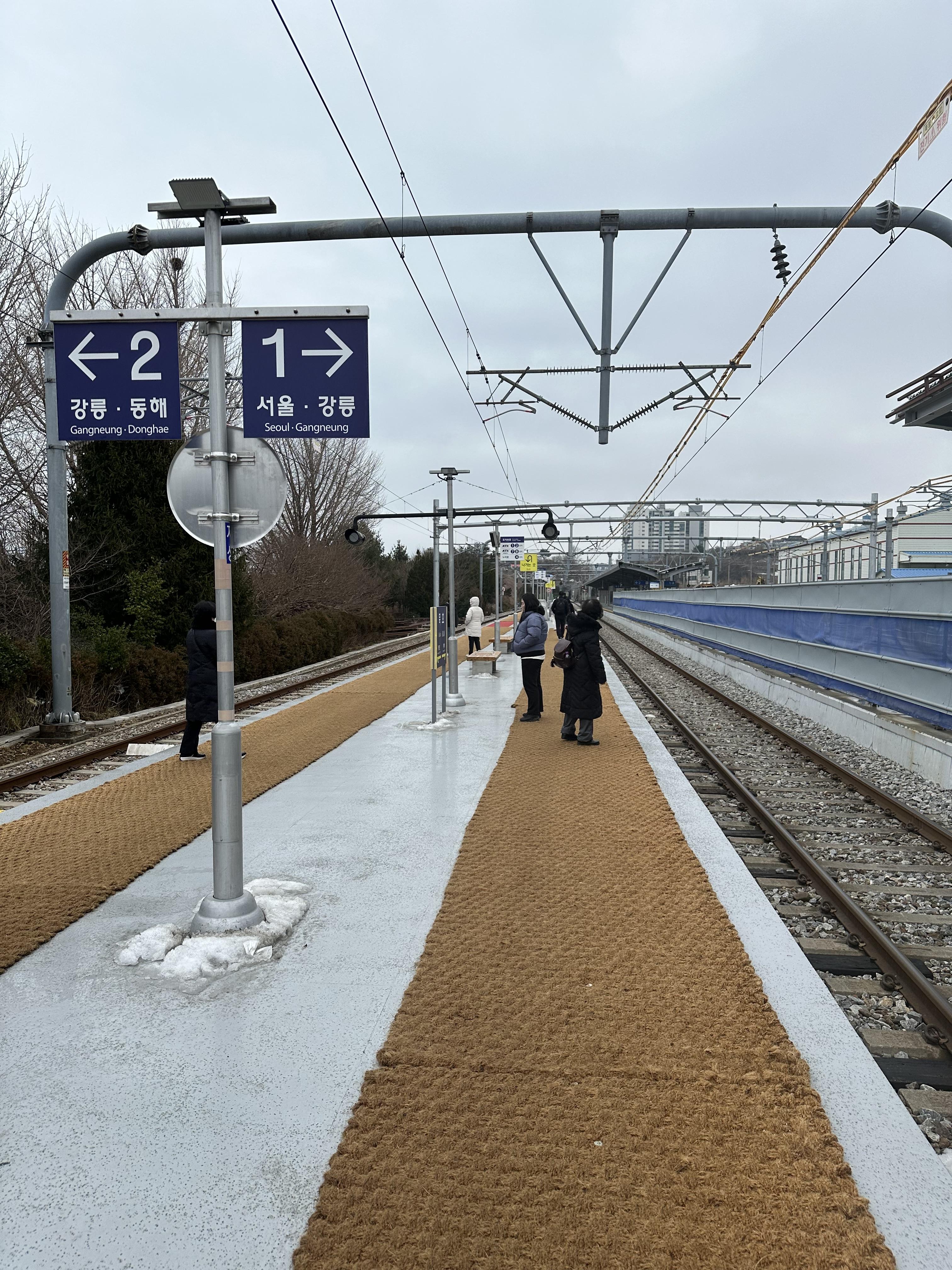 2024년 겨울여행의 두번째 여행지는 속초였습니다. 저는 속초로 가기 위해서 묵호역에서 누리로 열차를 기다리고 있었습니다. 그리고 얼마 있지 않아 누리로 열차가 묵호역에 진입하고 있었습니다.