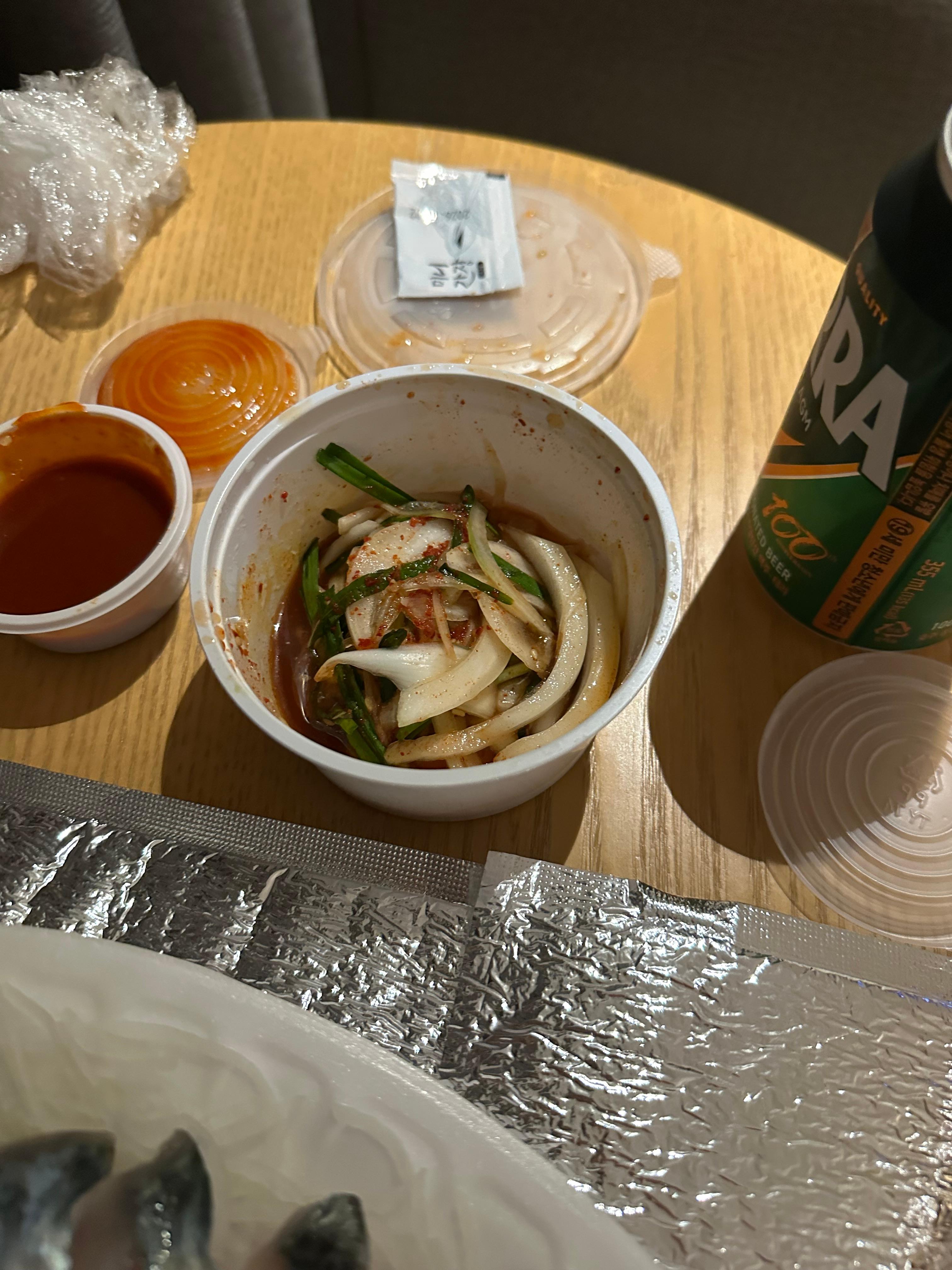 혼자서 여행한다면 올레시장에서 이렇게 부담되지 않는 가격으로도 고등어회를 먹을 수 있습니다. 특히 일반 광어회에 비해 고등어회가 더 부드럽고 잘넘어가는 맛이 좋았는데요. 그래도 회먹다보니 테라맥주와 밥은 조금 먹어야 할거 같아서 햇반을 편의점에서 사서 먹었습니다. 전자레인지가 있어서 객실안에서도 편하게 먹었습니다. 그렇게 저녁으로 고등어회와 햇반을 맛있게 먹고 2일차를 마무리 하게 되었습니다.