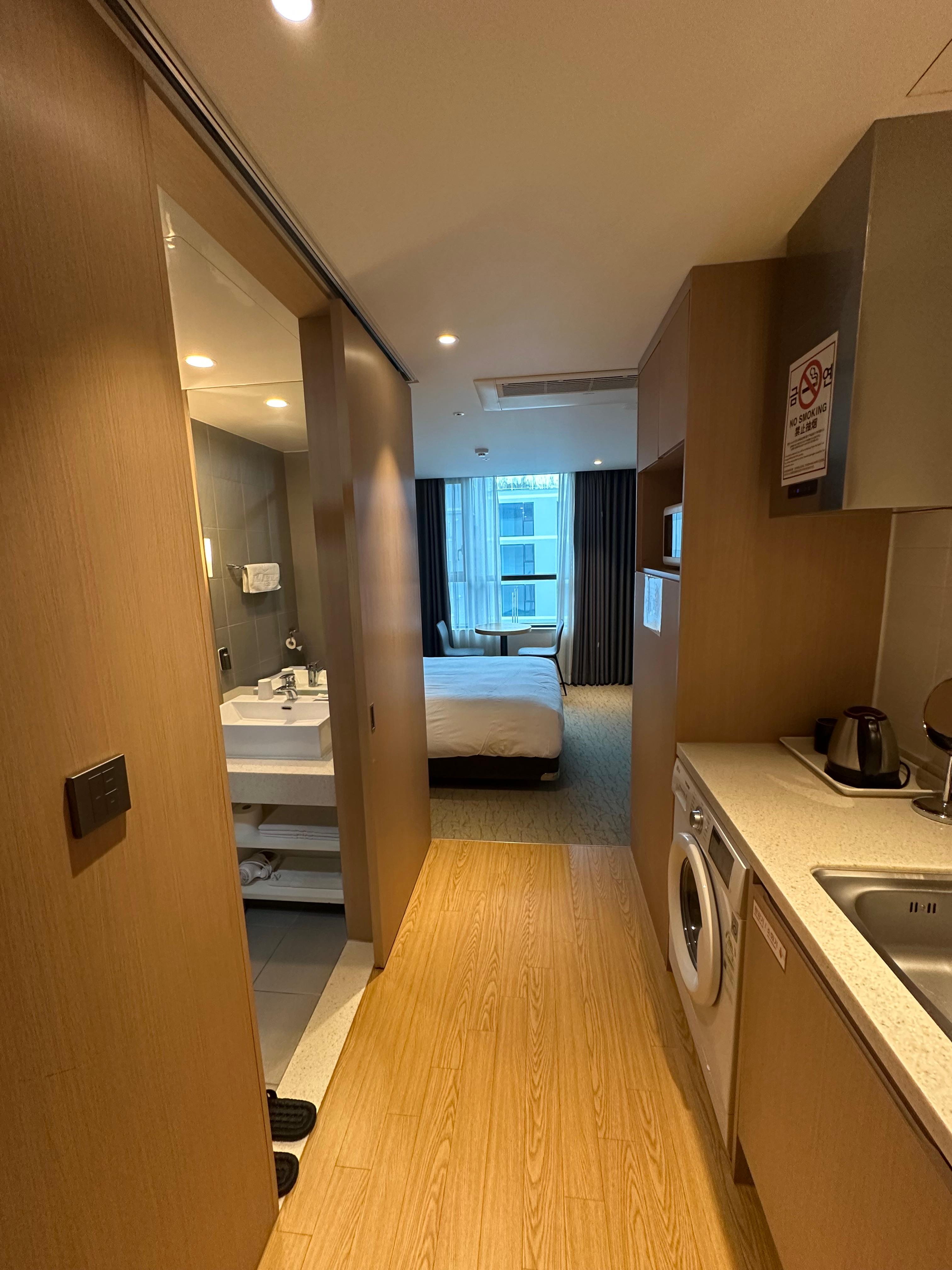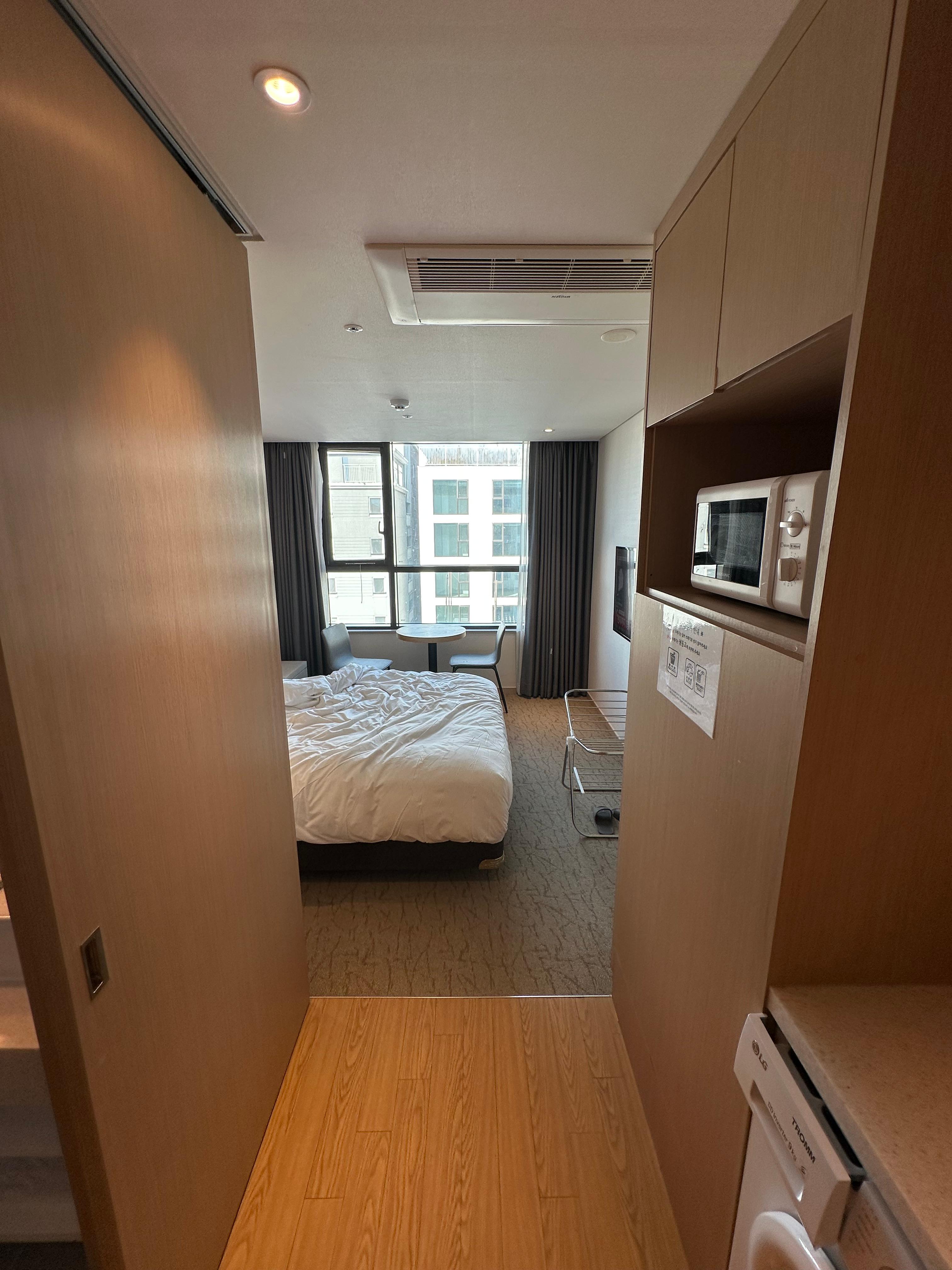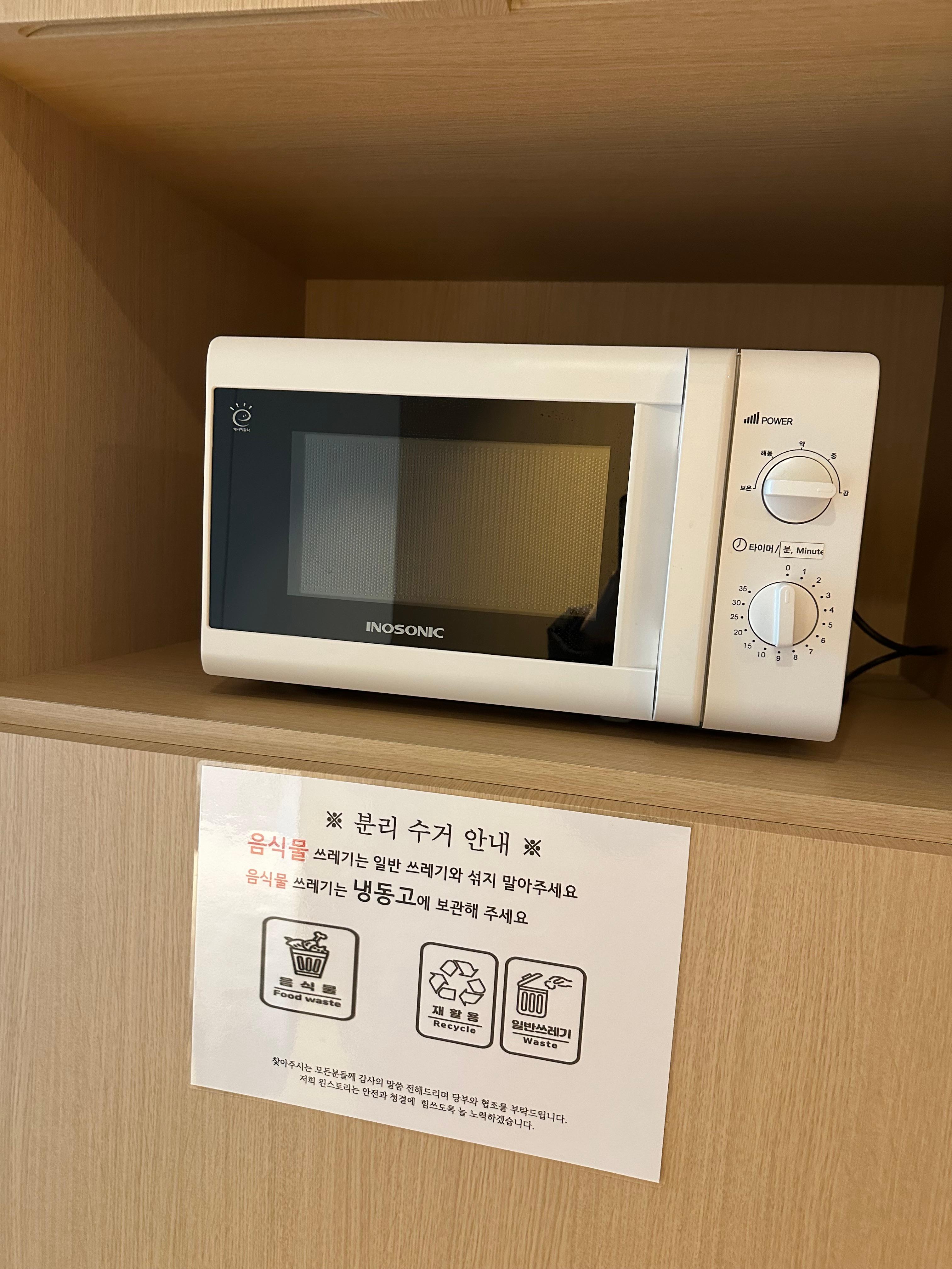 전자레인지도 있어서 이용하기 편했습니다. 보통 호텔이나 펜션의 경우 전자레인지가 객실밖에 있거나 프론트에서 이용할 수 있었는데요. 윈스토리 호텔은 저렴한 가격이라서 부담없이 이용할 수 있지만 이렇게 전자레인지, 세탁기, 냉장고까지 편의시설이 다 갖추어진 정말 가성비 호텔이었습니다. 만약 건조기도 된다면 더 좋았지만 그래도 세탁기가 있는 것만으로도 좋았습니다.