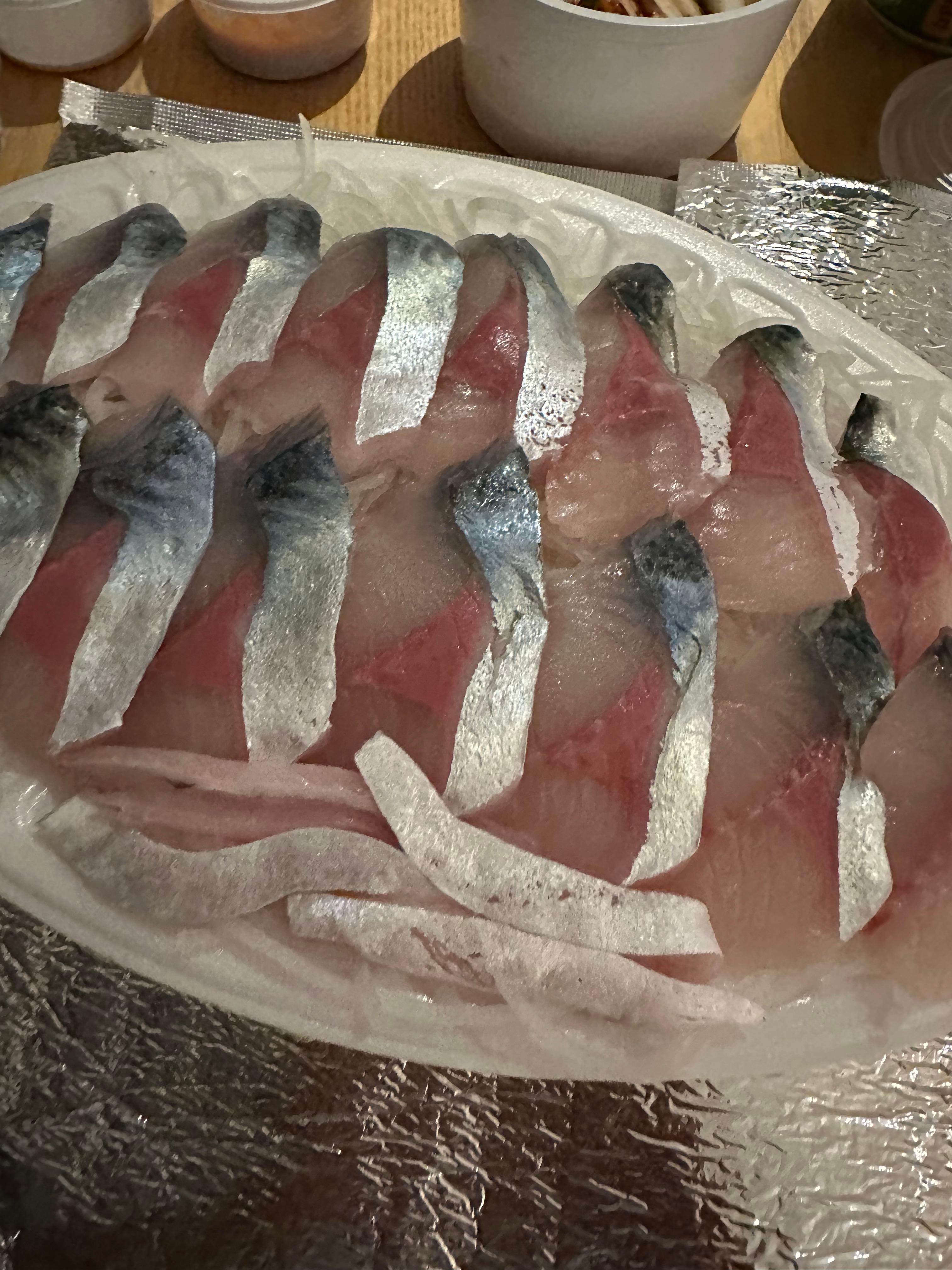 저는 서귀포매일올레시장에서 야시장 구경을 하면서 고등어회를 25,000원에 구매했는데요. 오전에 모슬포 미영이네에서는 5만원이 조금 넘는 금액으로 혼자서는 부담스러웠는데요. 그래도 모슬포 미영이네는 가게에서 먹다보니 고등어회 퀄리티부터 반찬까지 정말 비교할 수 없는데요.